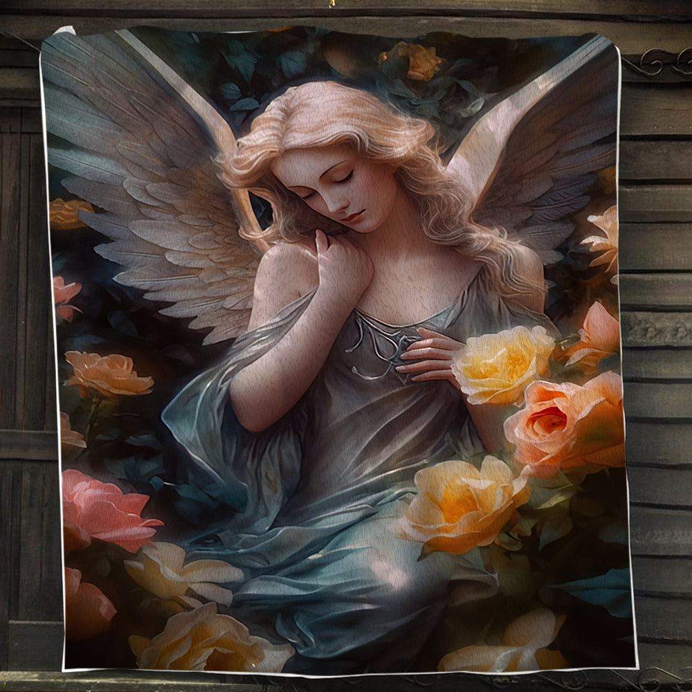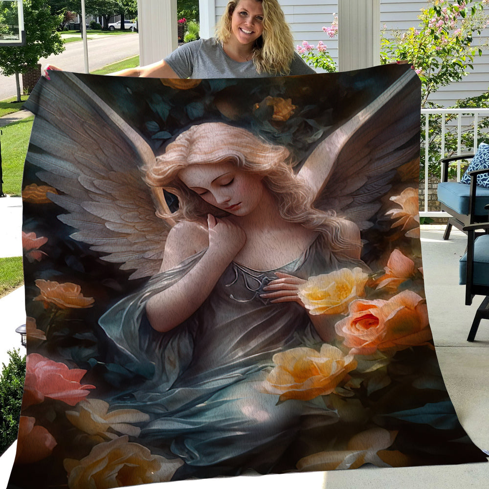 Angel Around Flowers Christmas, Angel Xmas Fleece Blanket & Sherpa Blanket Gift