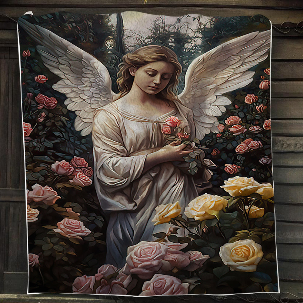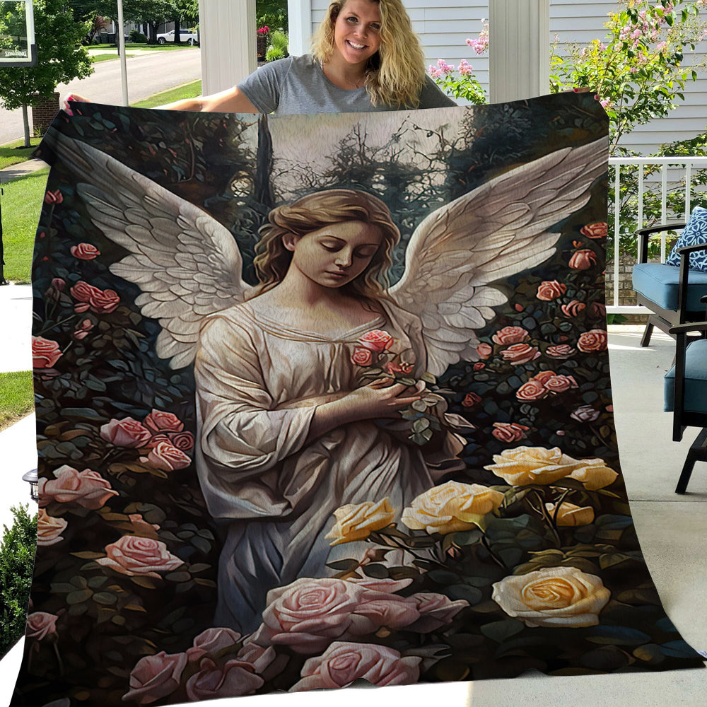 Angel Blessing In The Garden Flowers Christmas, Angel Xmas Fleece Blanket & Sherpa Blanket Gift