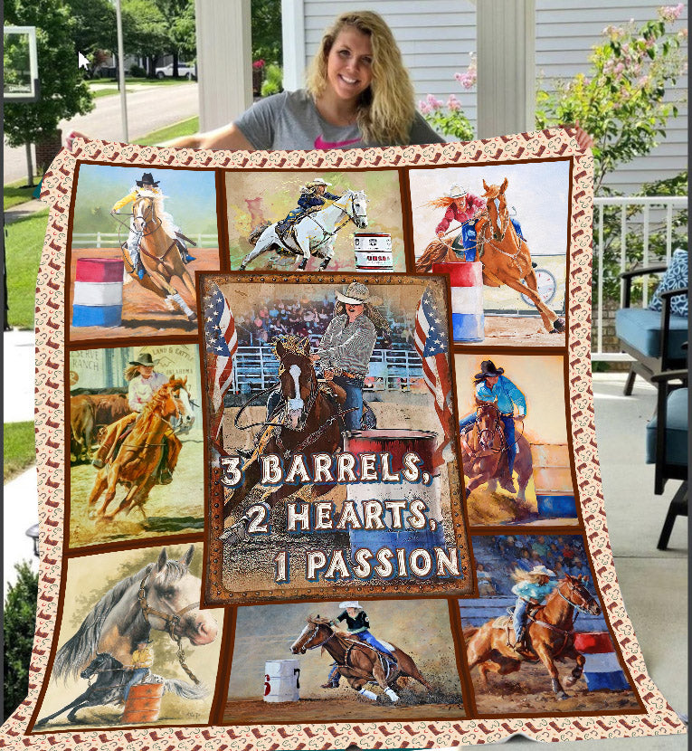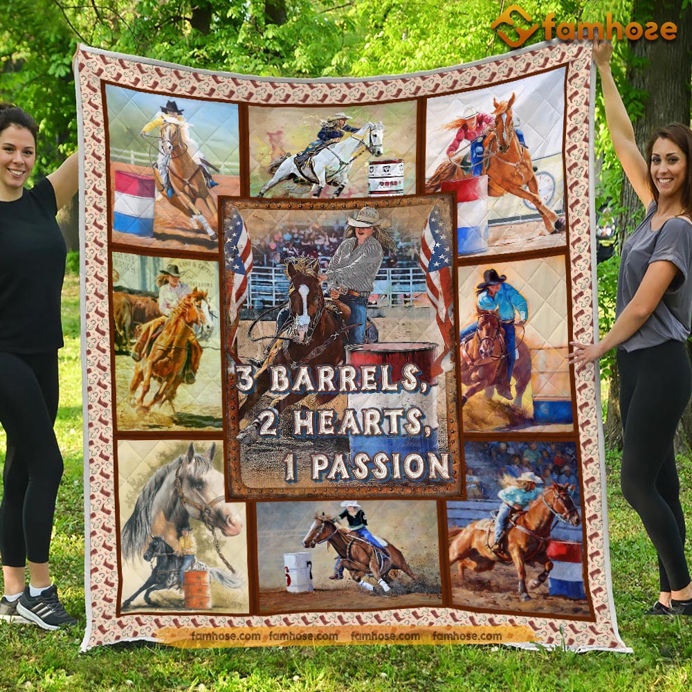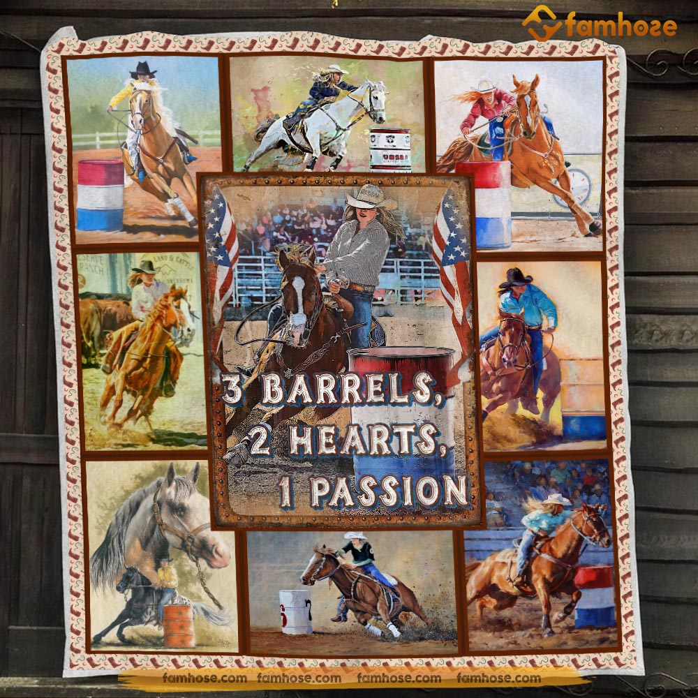 Barrel Racing Blanket, 3 Barrels 2 Hearts 1 Passion, Barrel Racing Fleece Blanket - Sherpa Blanket Gift For Barrel Racing Lover