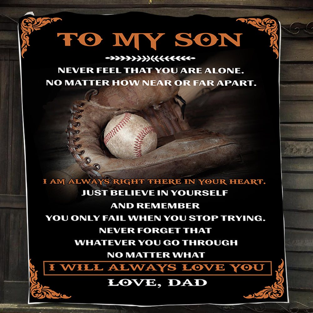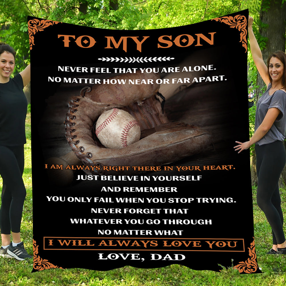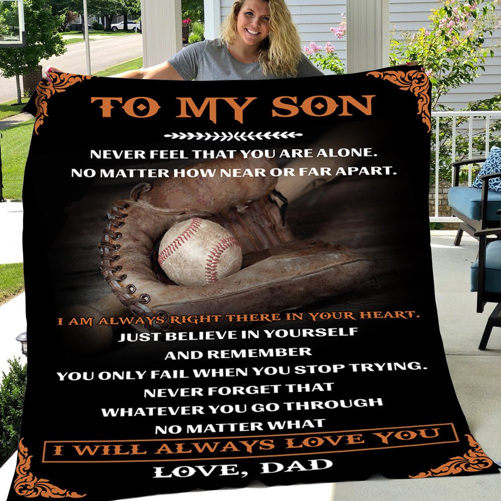 Baseball Blanket, To My Son Never Feel That You Are Alone Fleece Blanket - Sherpa Blanket Gift For Baseball Lovers, Baseball Players