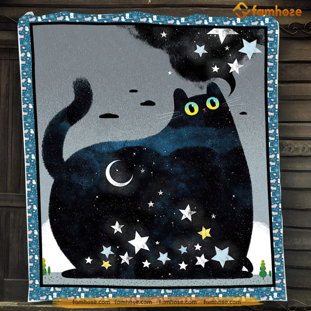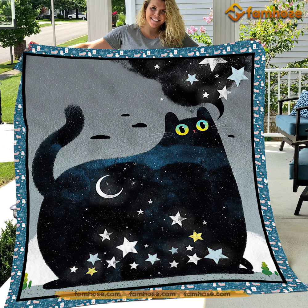 Black Cat Blanket, Cat With Glitter Eyes Fleece Blanket - Sherpa Blanket Gift For Cat Lover, Cat Owners