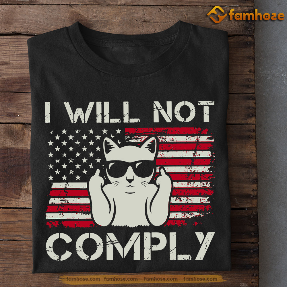 July 4th Cat T-shirt, I Will Not Comply, Independence Day Gift For Cat Lovers, Cat Owners, Cat Tees
