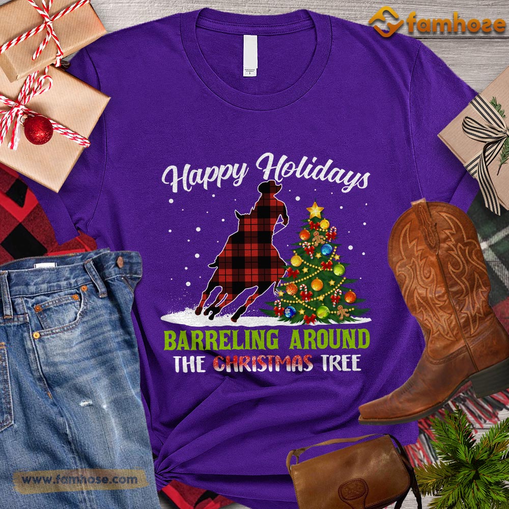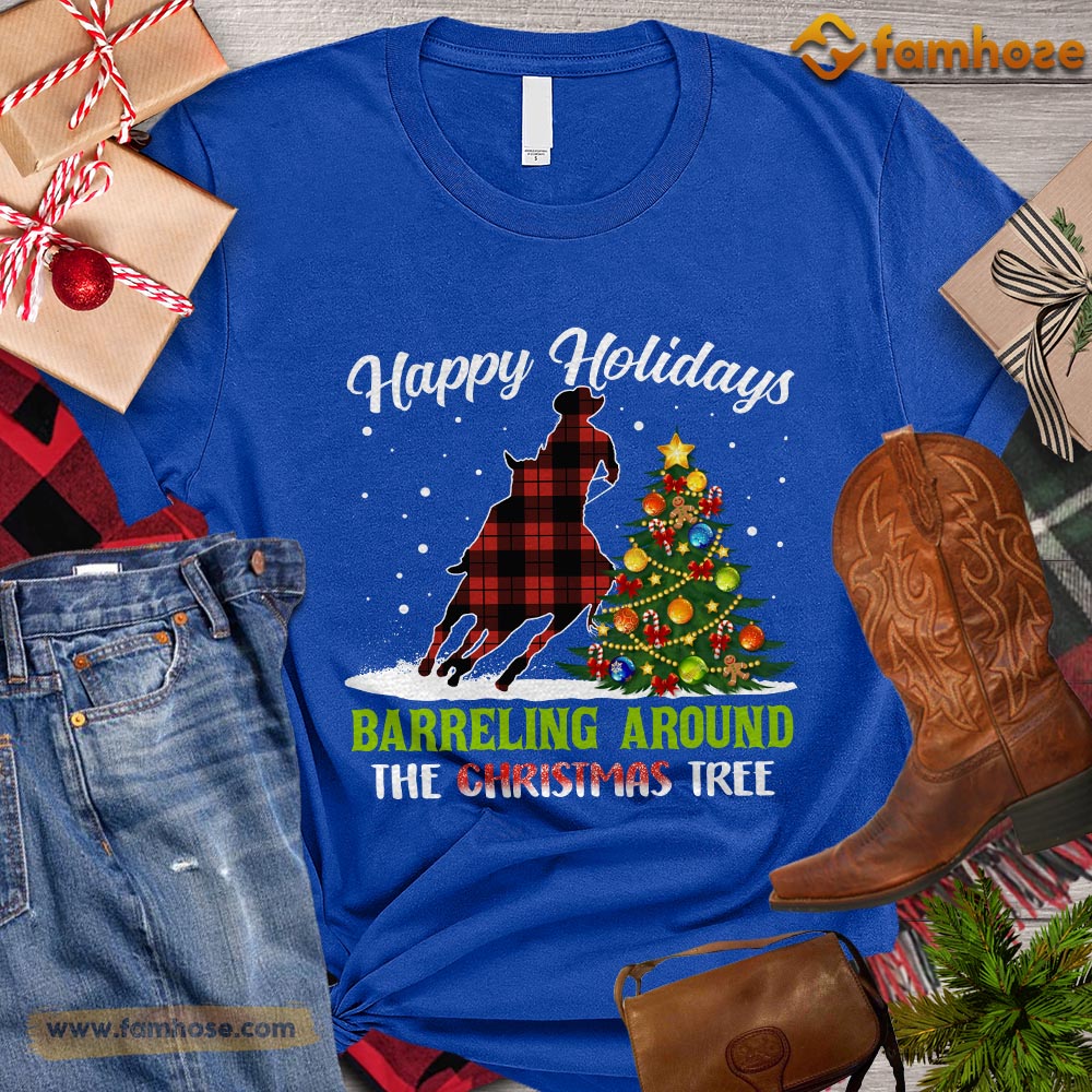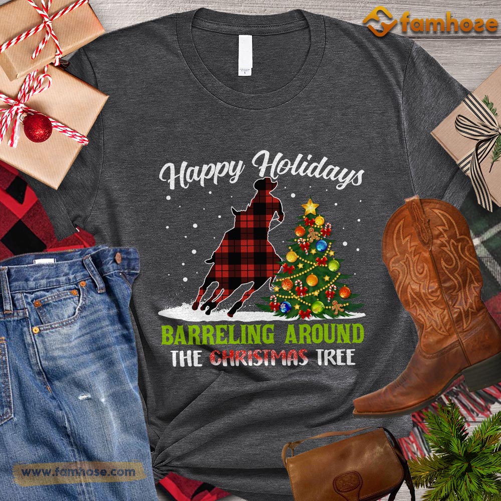Christmas Barrel Racing T-shirt, Happy Holidays Barreling Around The Christmas Tree Gift For Barrel Racing Lovers, Horse Riders, Equestrians