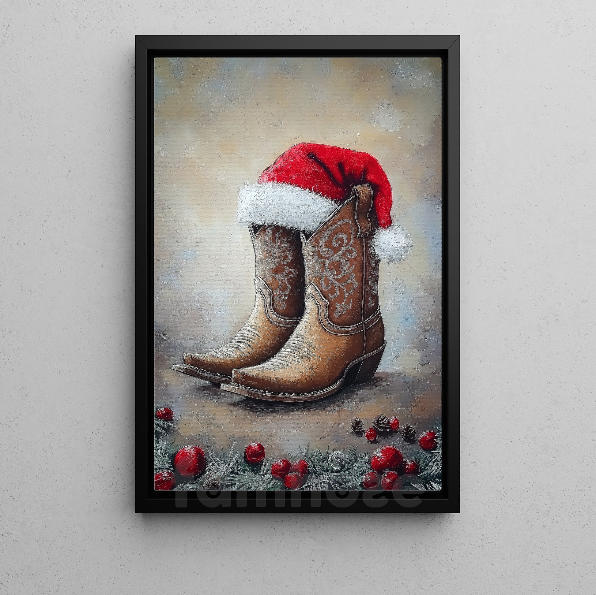 Christmas Cowboy Canvas Painting, Rustic Cowboy Christmas Wall Art Decor Xmas Poster Gift For Cowboys