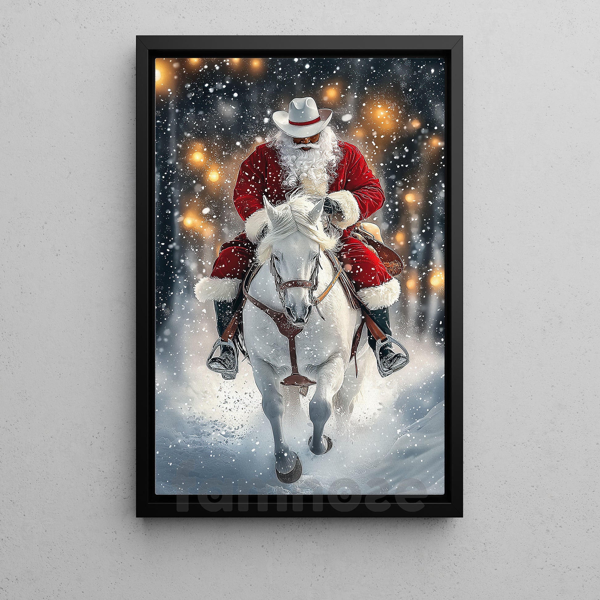 Christmas Cowboy Canvas Painting, Santa On Horseback Wall Art Decor Xmas Poster Gift For Cowboys