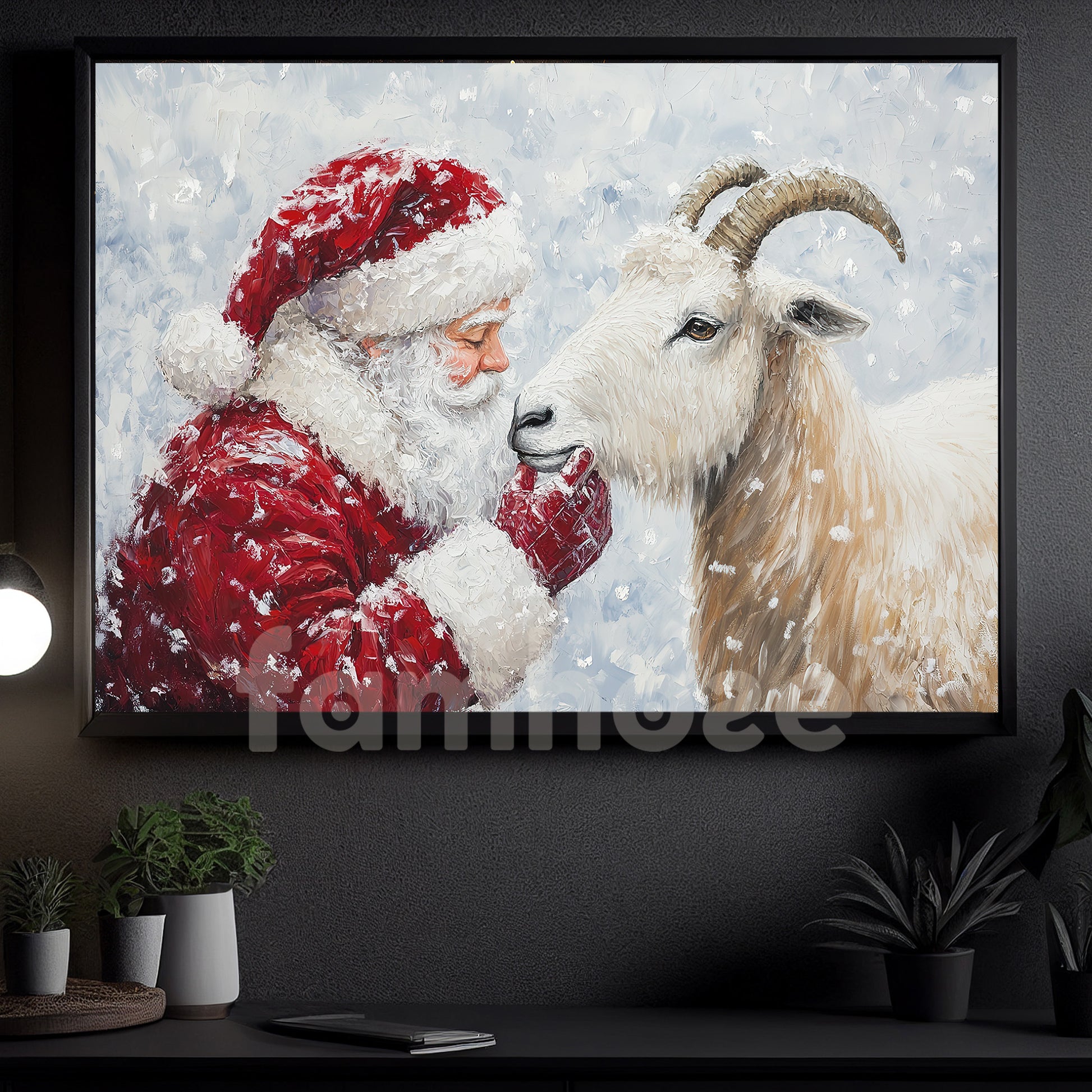 Christmas Goat Canvas Painting, Rustic Santa And Goat Wall Art Decor, Xmas Poster Gift For Goat Lovers