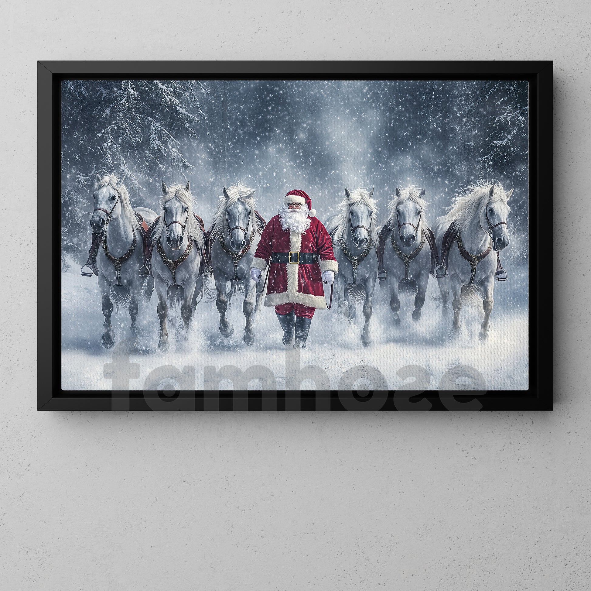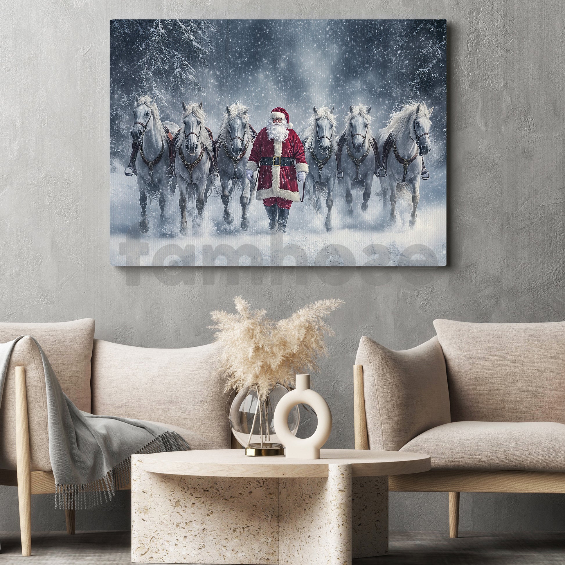 Christmas Horse Canvas Painting, Santa Claus And His Friends Wall Art Decor, Xmas Poster Gift For Horse Lovers