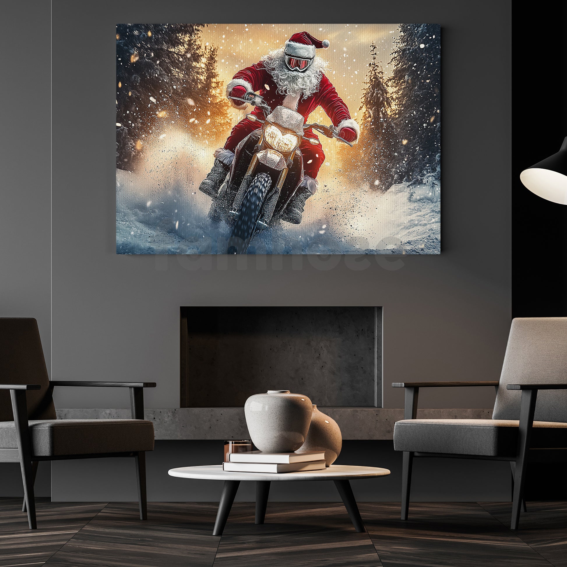 Christmas Motocross Canvas Painting, Santa’s Wild Snow Ride Wall Art Decor, Xmas Poster Gift For Motocross Lover