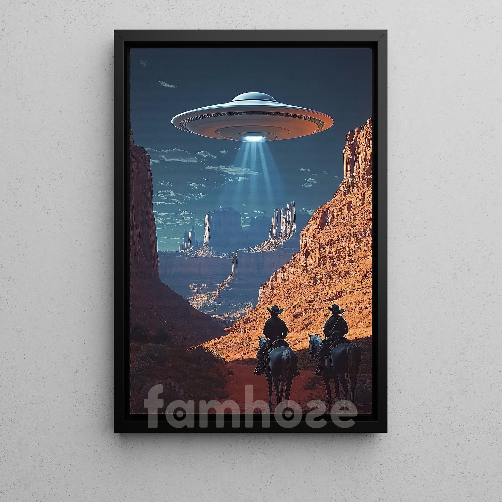 Cool Cowboy Canvas Painting, Cowboy And UFO Wall Art Decor, Poster Gift For Cowboy Lovers