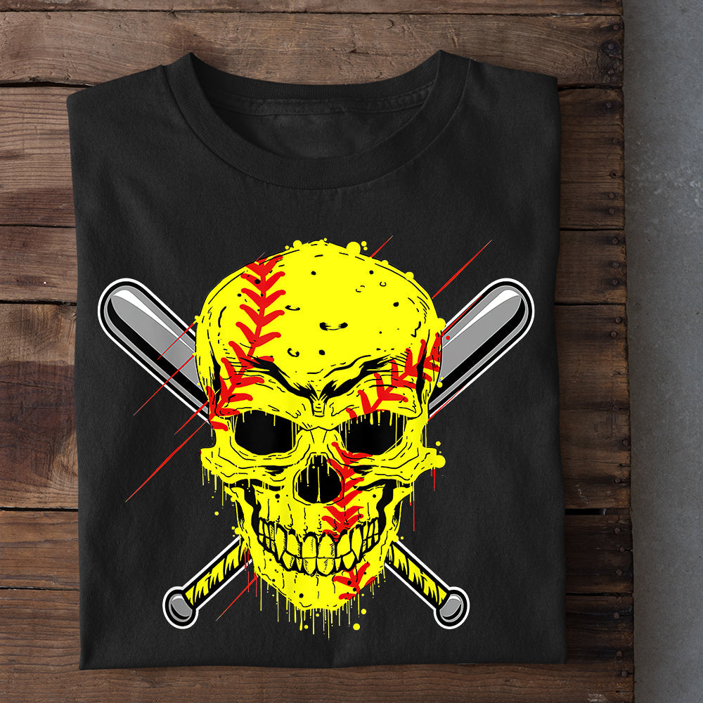 Cool Halloween Softball T-shirt, Softball Shaped Skull, Gift For Softball Lovers, Softball Tees