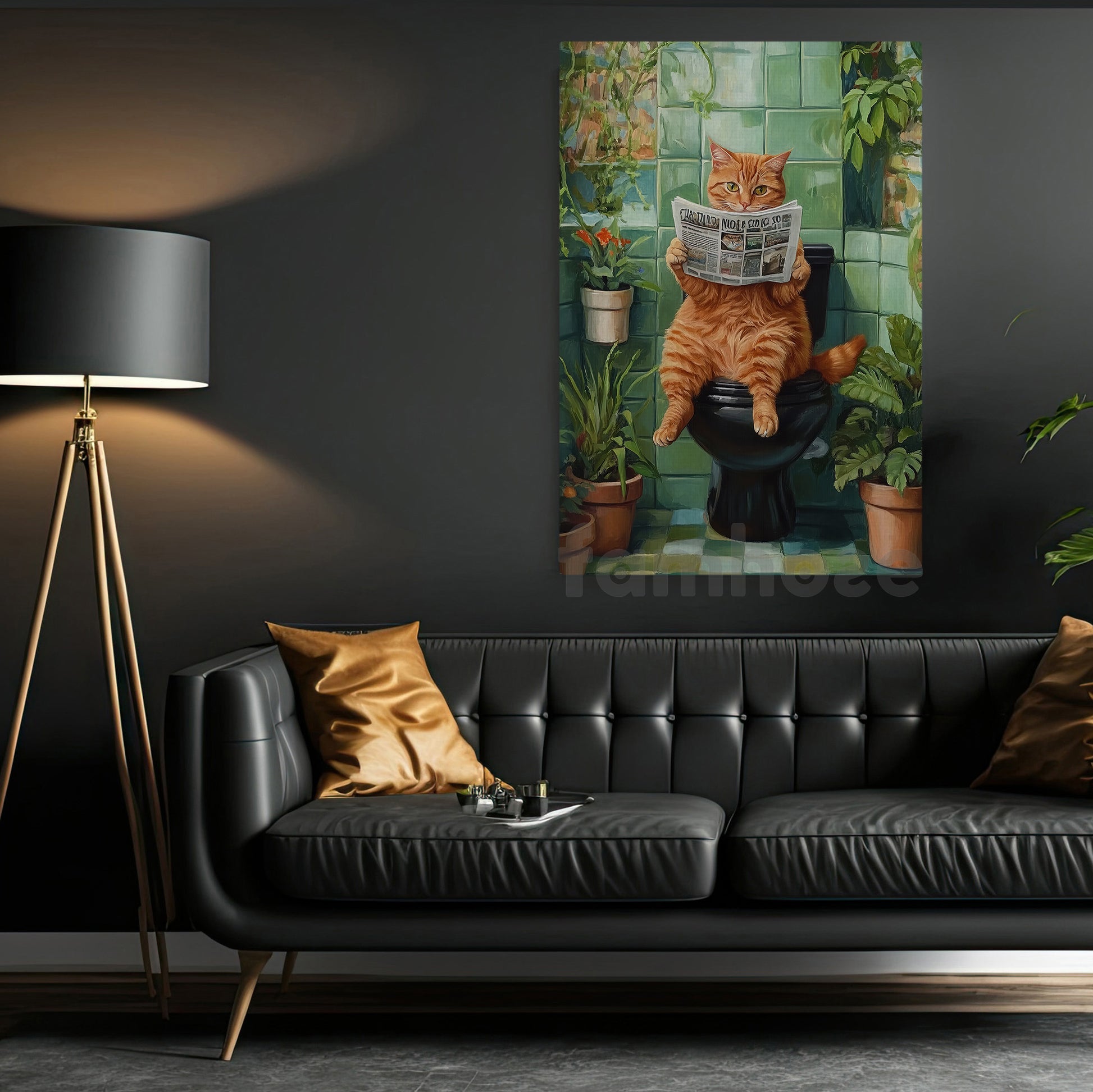 Cute Cat Canvas Painting, Toilet Time Tabby Wall Art Decor, Poster Gift For Cat Lovers