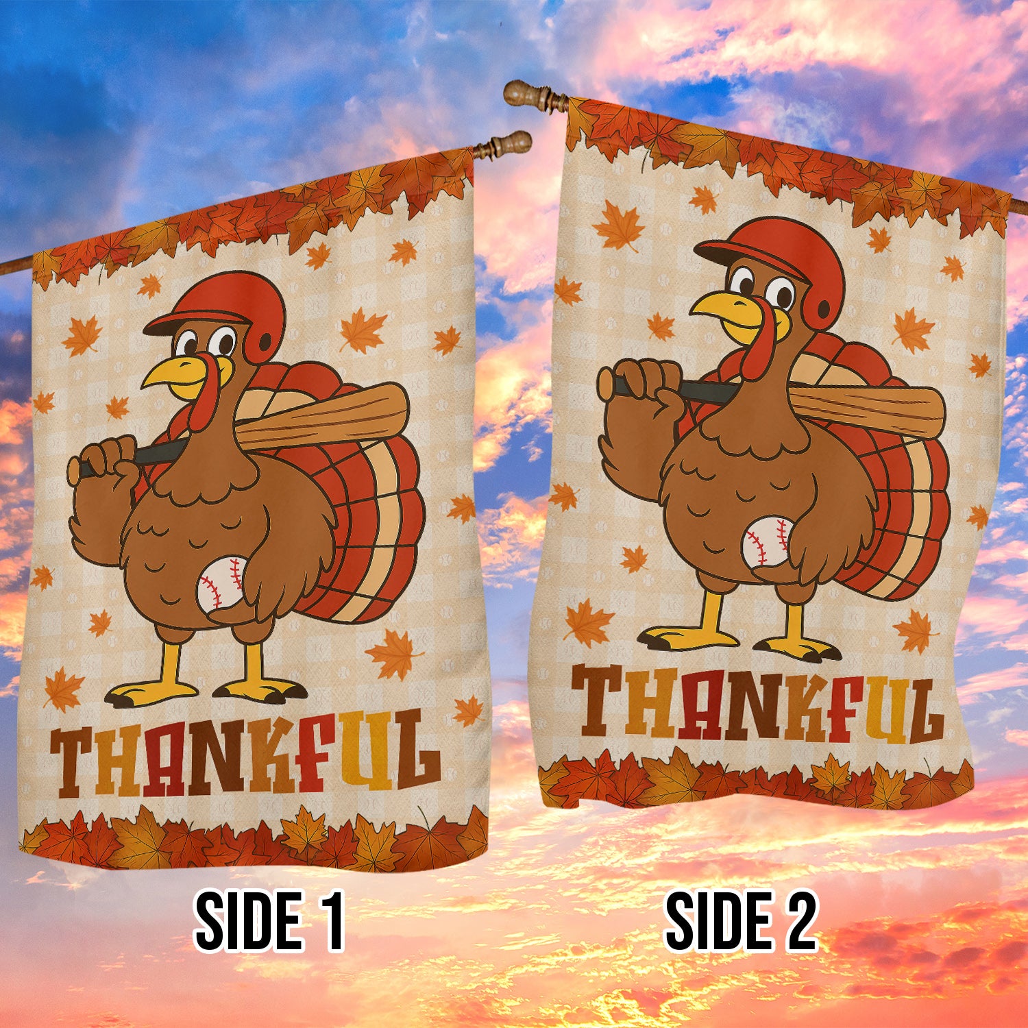 Cute Thanksgiving Baseball Garden & House Flag, Thankful Turkey Outdoor Decor, Yard Decor Gift For Baseball Lovers