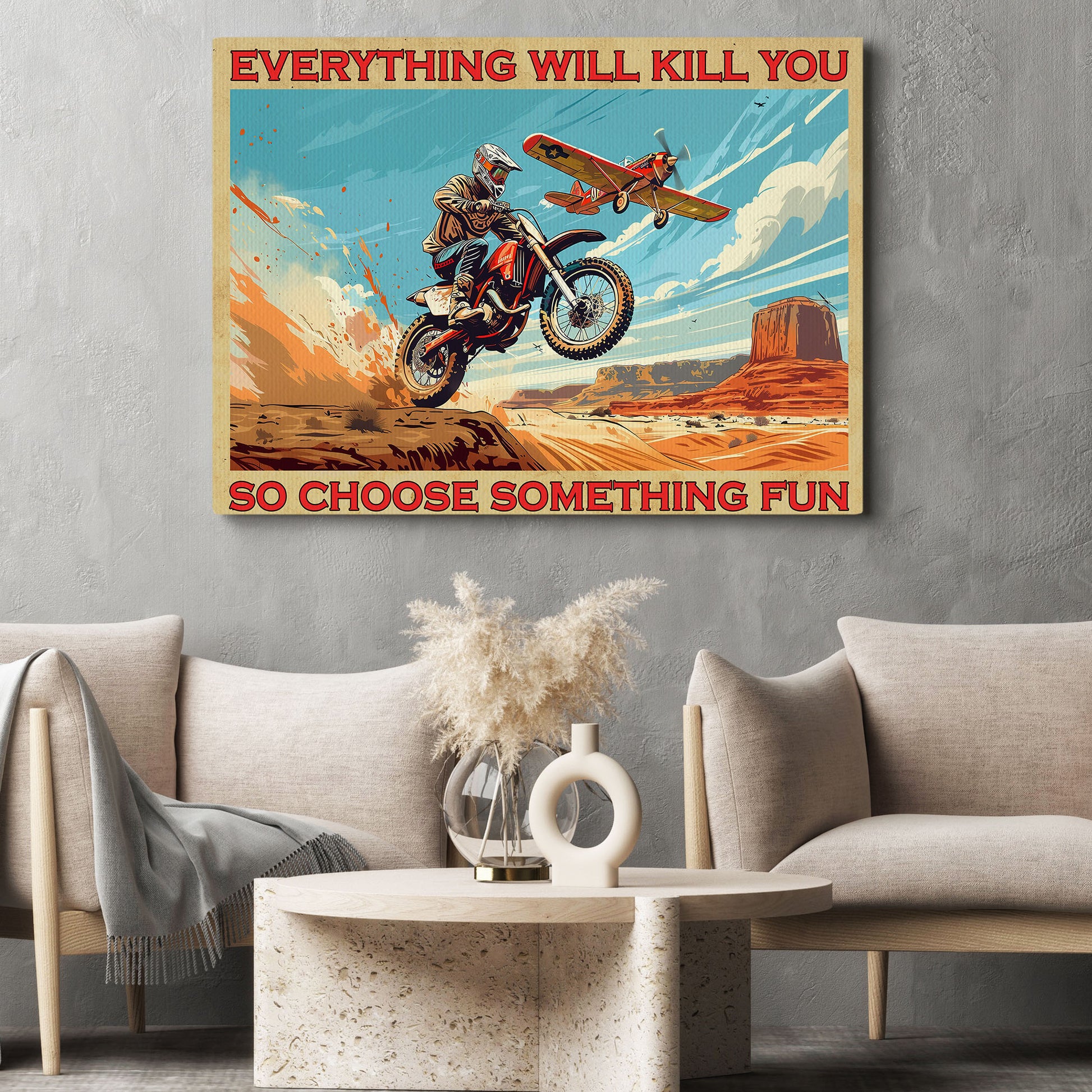 Everything Will Kill You, Funny Dirt Bike Canvas Painting, Interesting Quotes Wall Art Decor, Poster Gift For Motocross Lovers