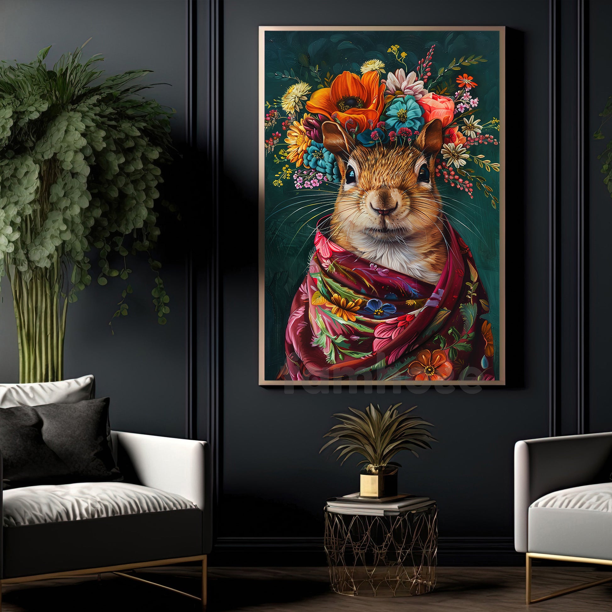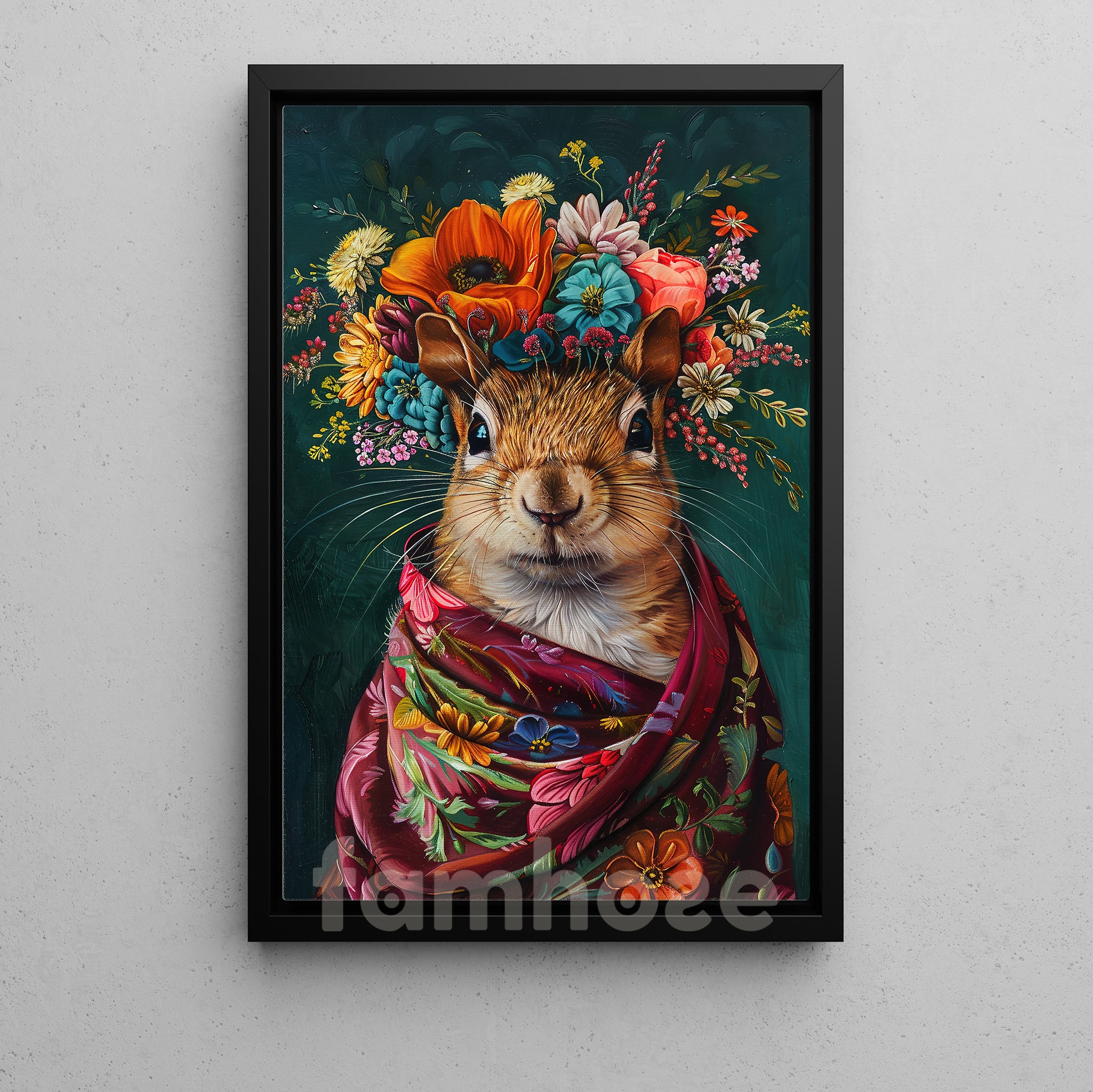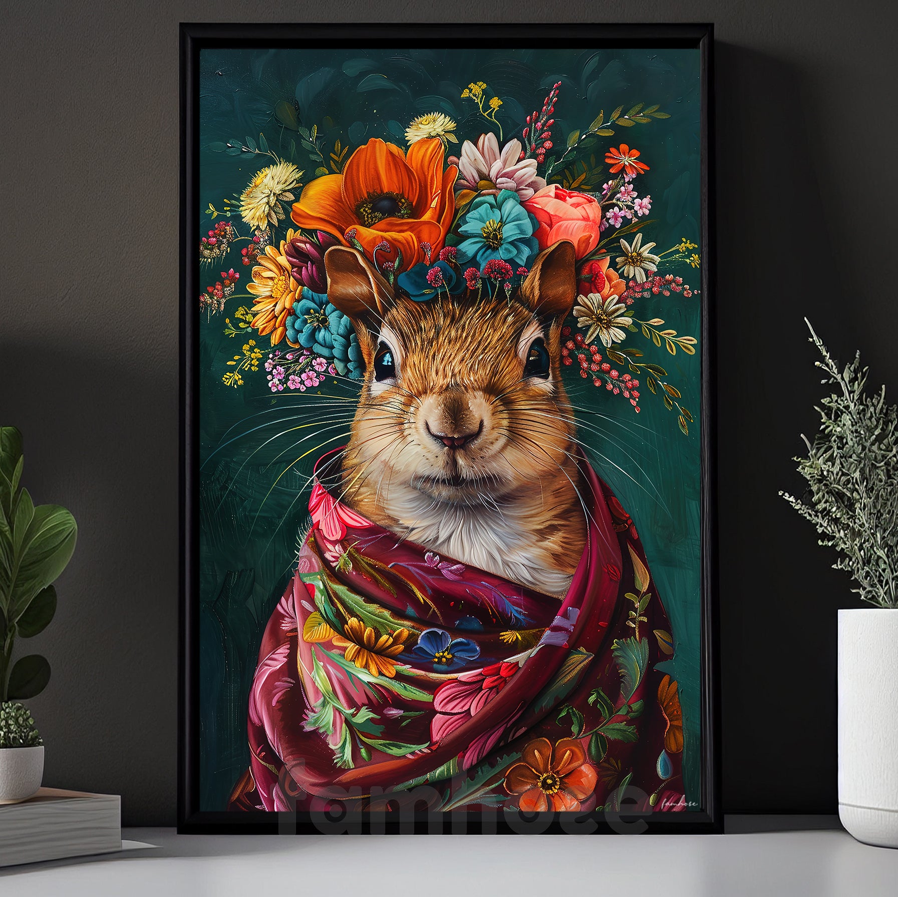 Floral Squirrel Canvas Painting, Elegant Squirrel In Floral Cloak Wall Art Decor, Poster Gift For Squirrel Lovers