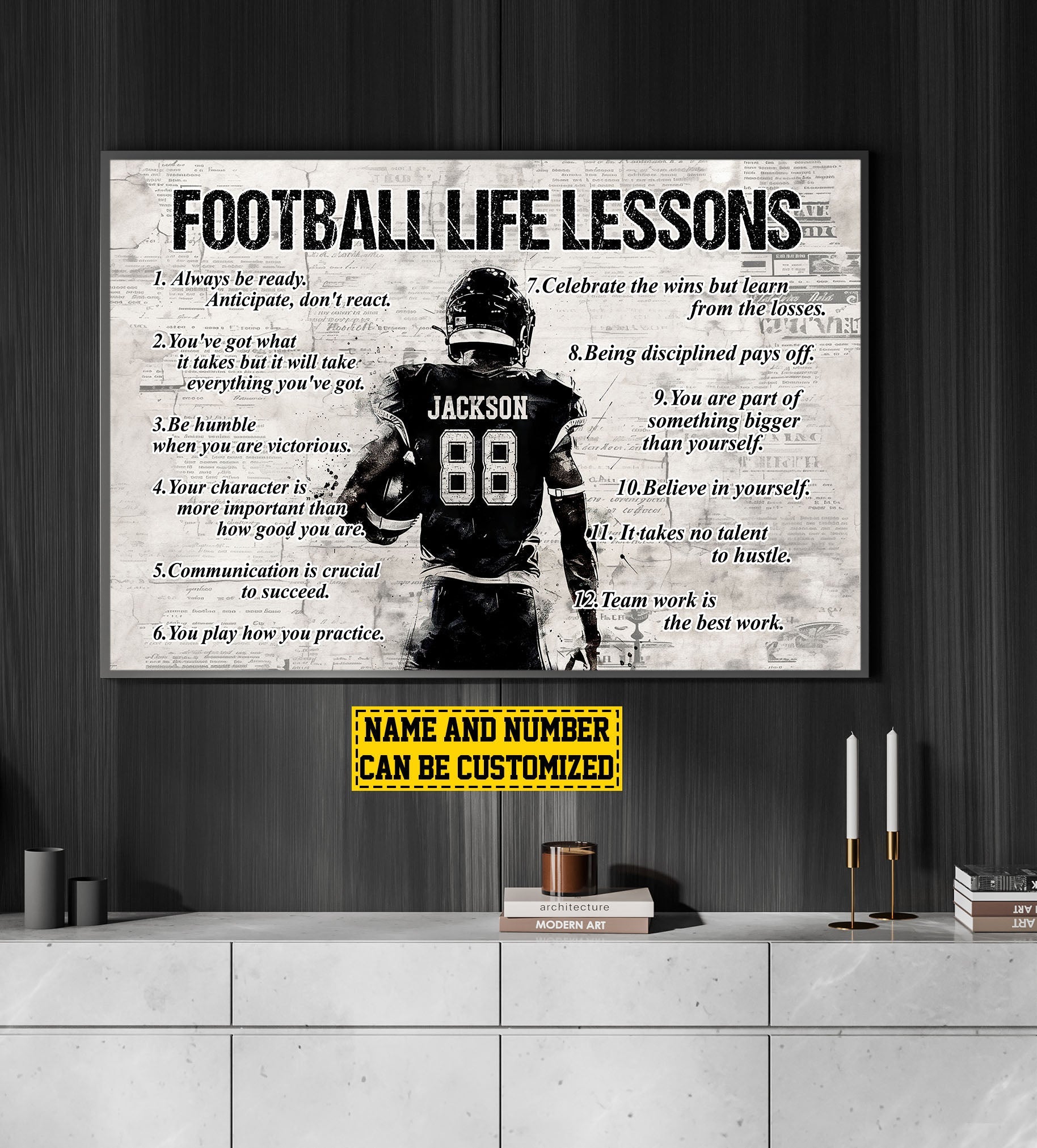 Football Life Lessons, Personalized Motivational Football Boy Canvas Painting, Inspirational Quotes Wall Art Decor, Poster Gift For Football Lovers