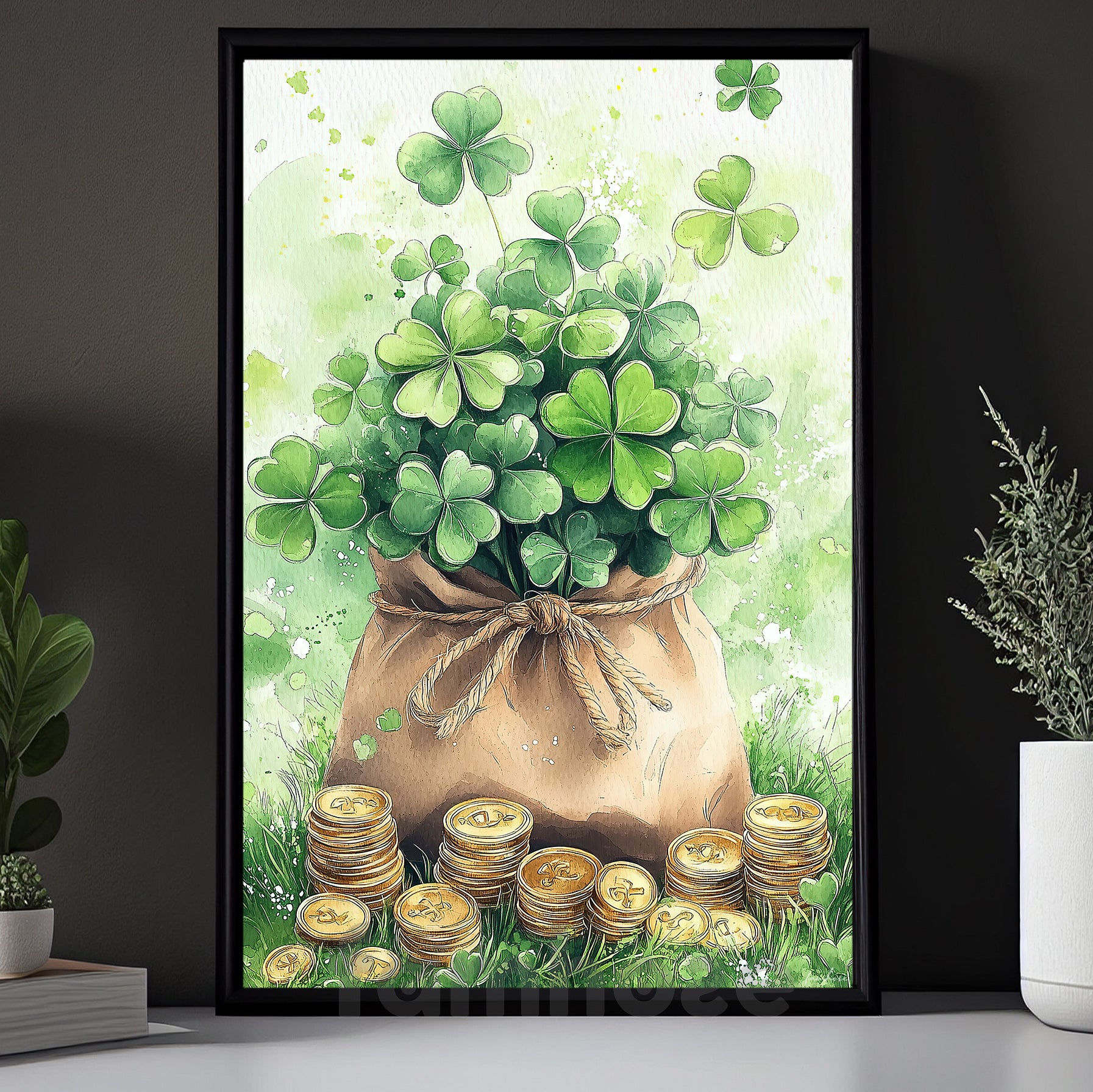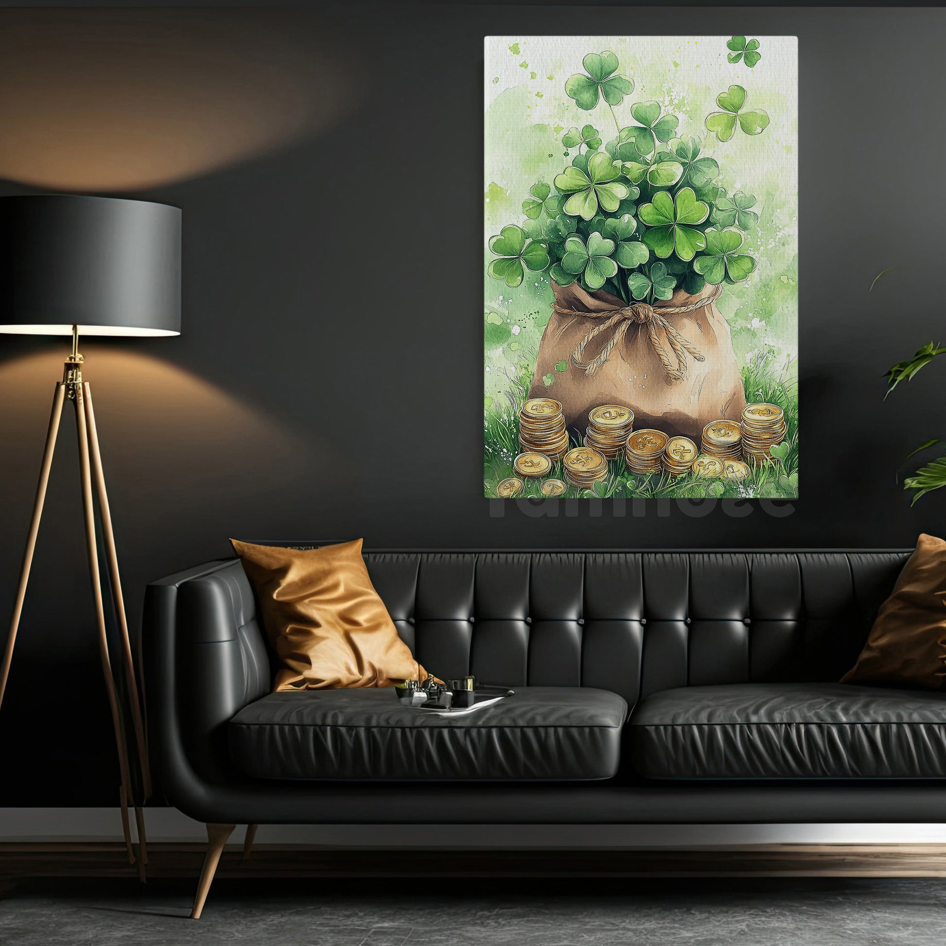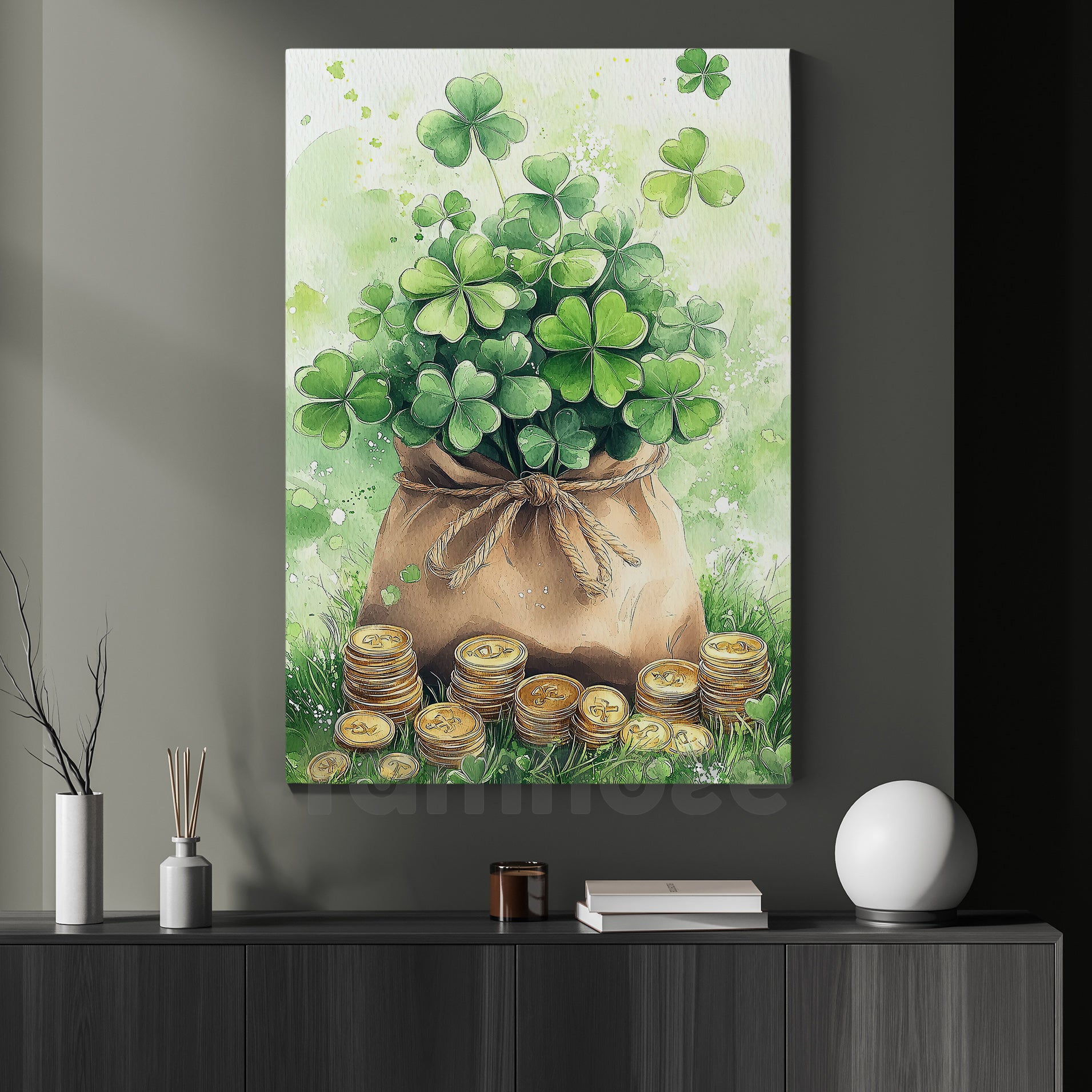 Four-Leaf Clover Canvas Painting, A Bag Full Of Luck Wall Art Decor, Shamrock Poster St Patrick's Day Gift For Irish Lover