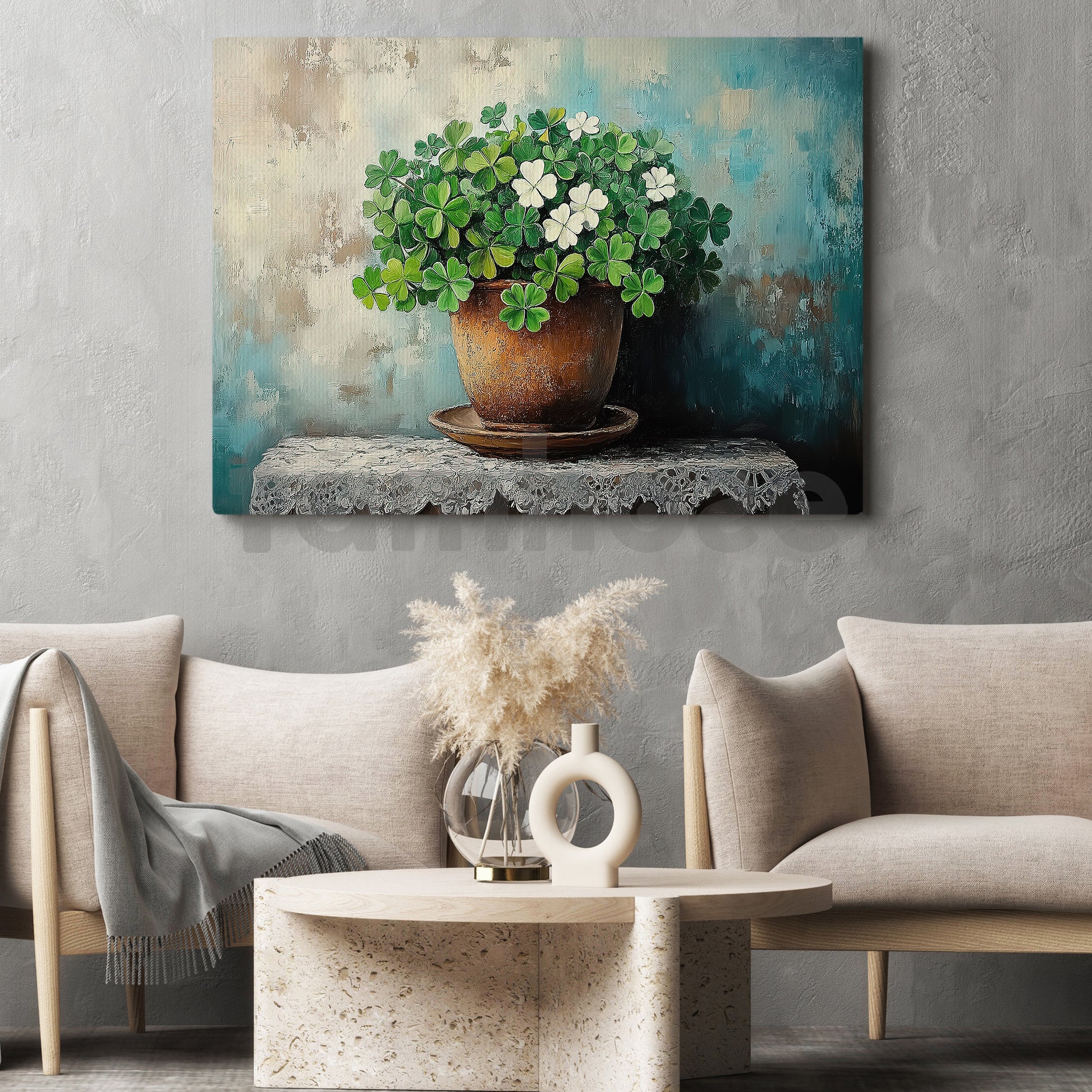 Four-Leaf Clover Canvas Painting, A Quiet Pot Of Luck Wall Art Decor, Shamrock Poster St Patrick's Day Gift For Irish Lover