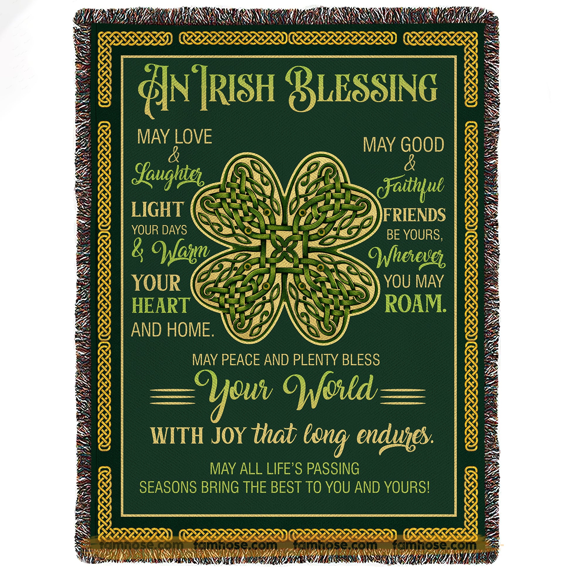 Four-Leaf Clover Fleece Blanket, An Irish Blessing Woven Blanket, Sherpa Blanket St Patrick's Day Gift For For Irish Lover
