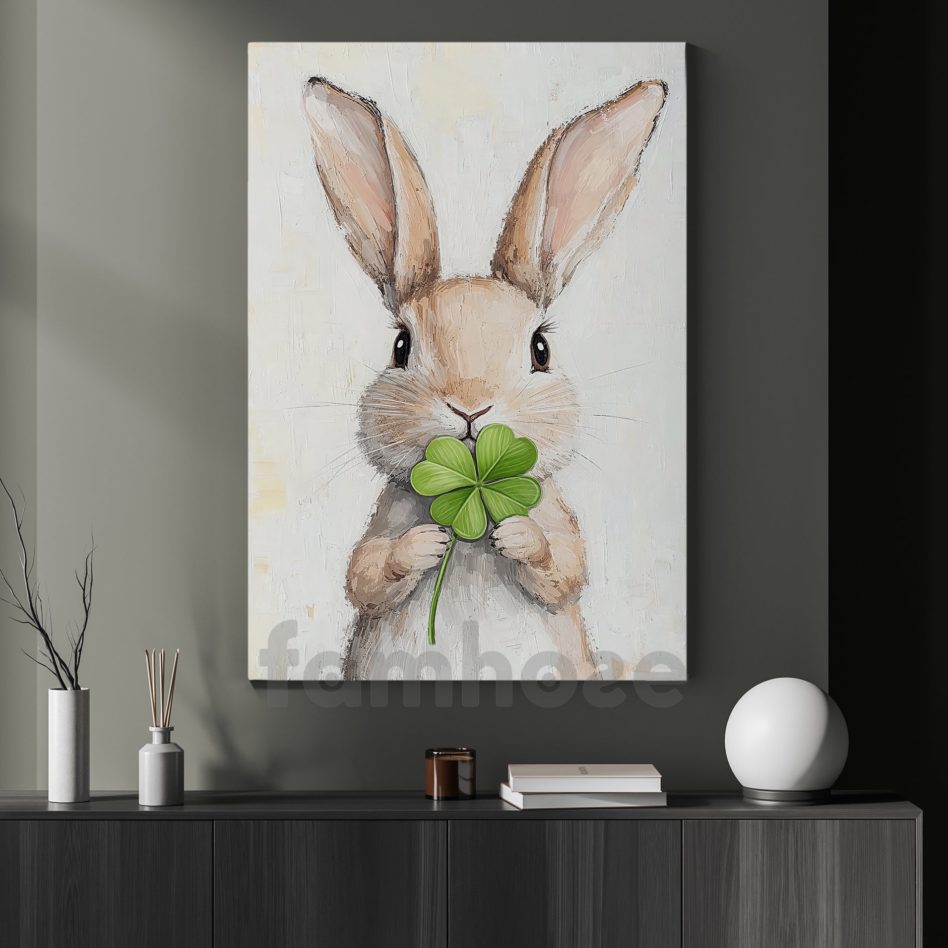 Four-Leaf Clover Rabbit Canvas Painting, A Bunny’s Wish Of Good Fortune Wall Art Decor, Shamrock Poster St Patrick's Day Gift For Irish Lover