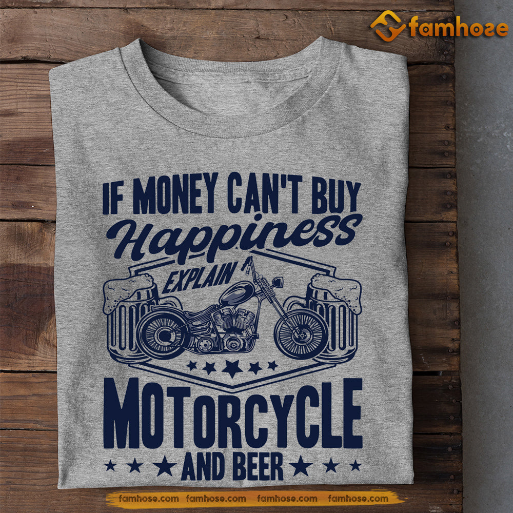Funny Biker T-shirt, If Money Can't Buy Happiness Explain Motorcycle And Beer, Gift For Motorcycle Lovers, Biker Tees