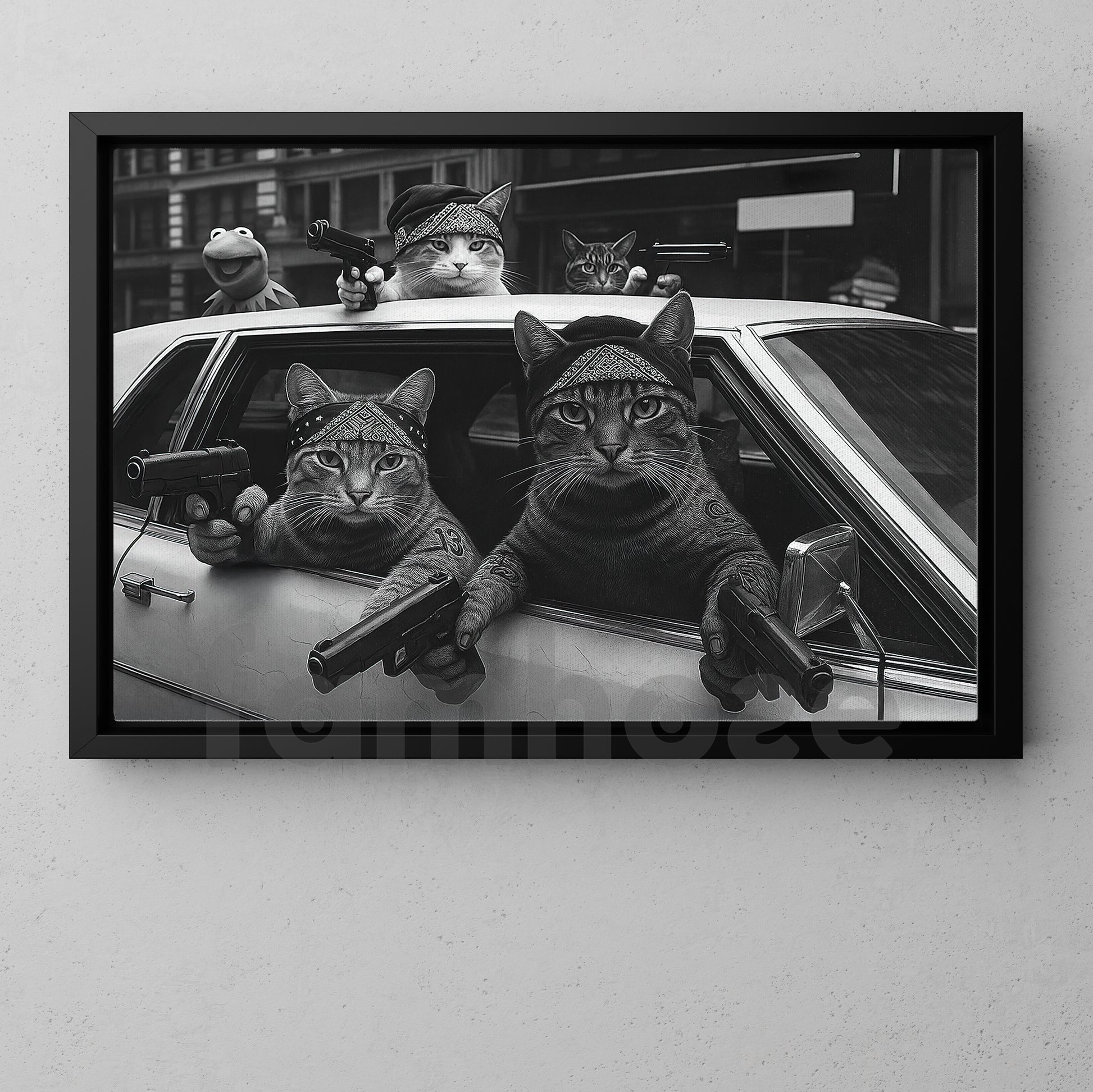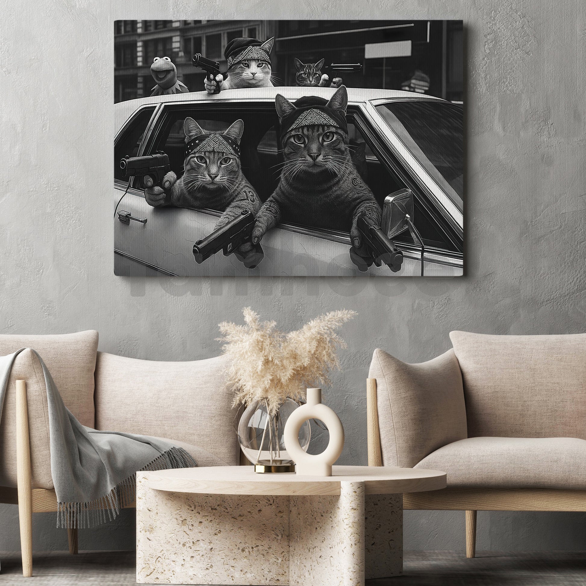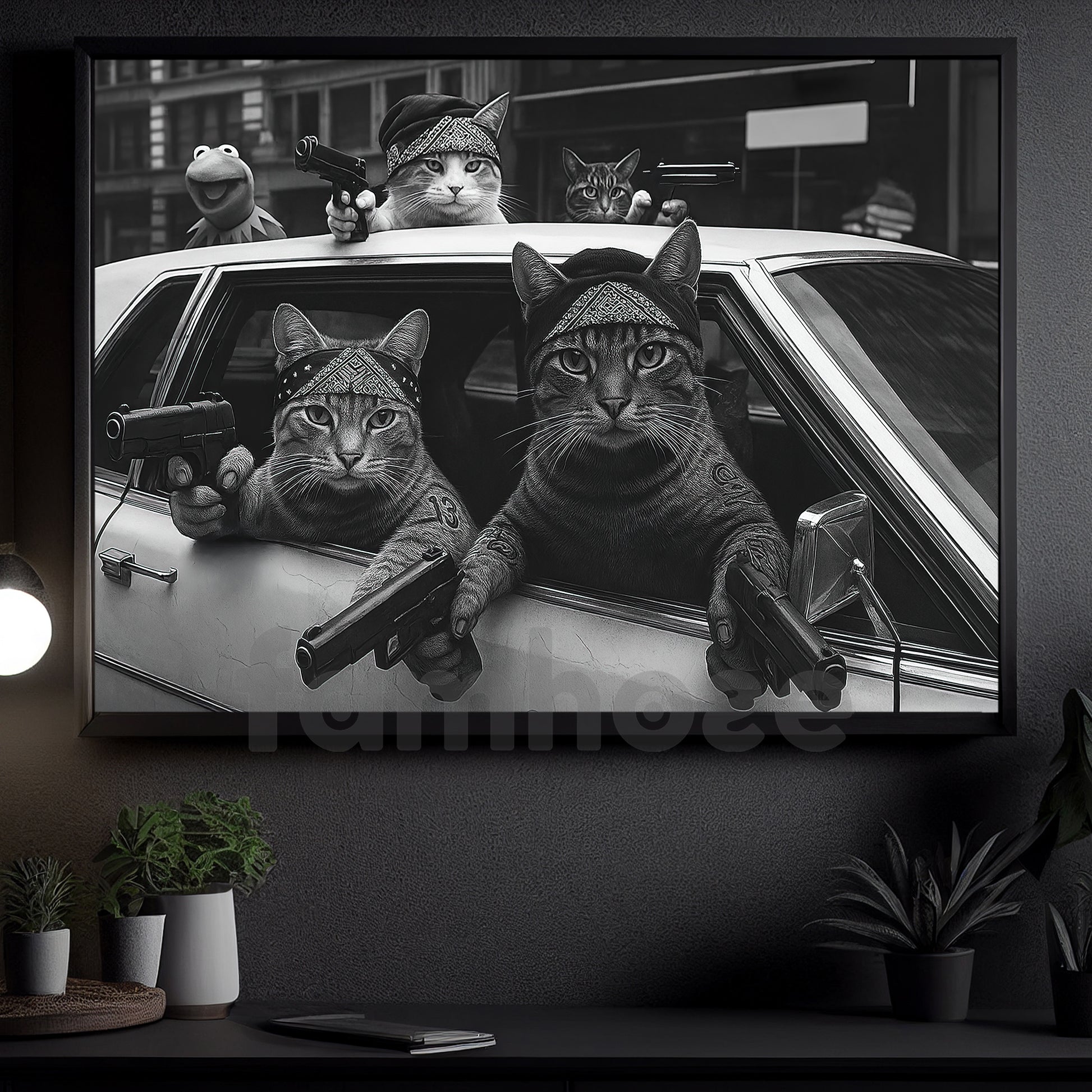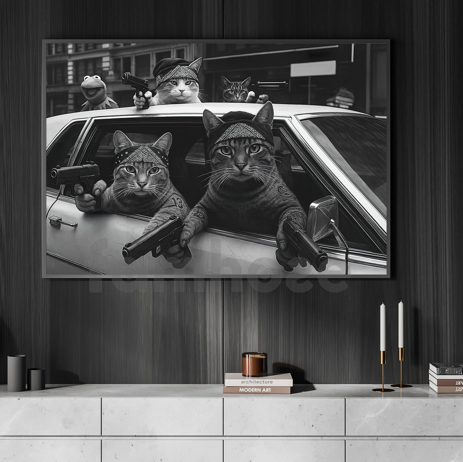 Funny Cat Canvas Painting, Gangster Cats Wall Art Decor, Poster Gift For Cat Lovers