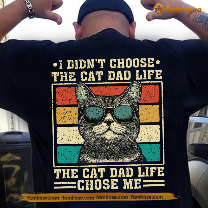 Funny Cat Dad Backside T-shirt, The Cat Dad Life Chose Me Tees Father's Day Gift For Cat Lovers