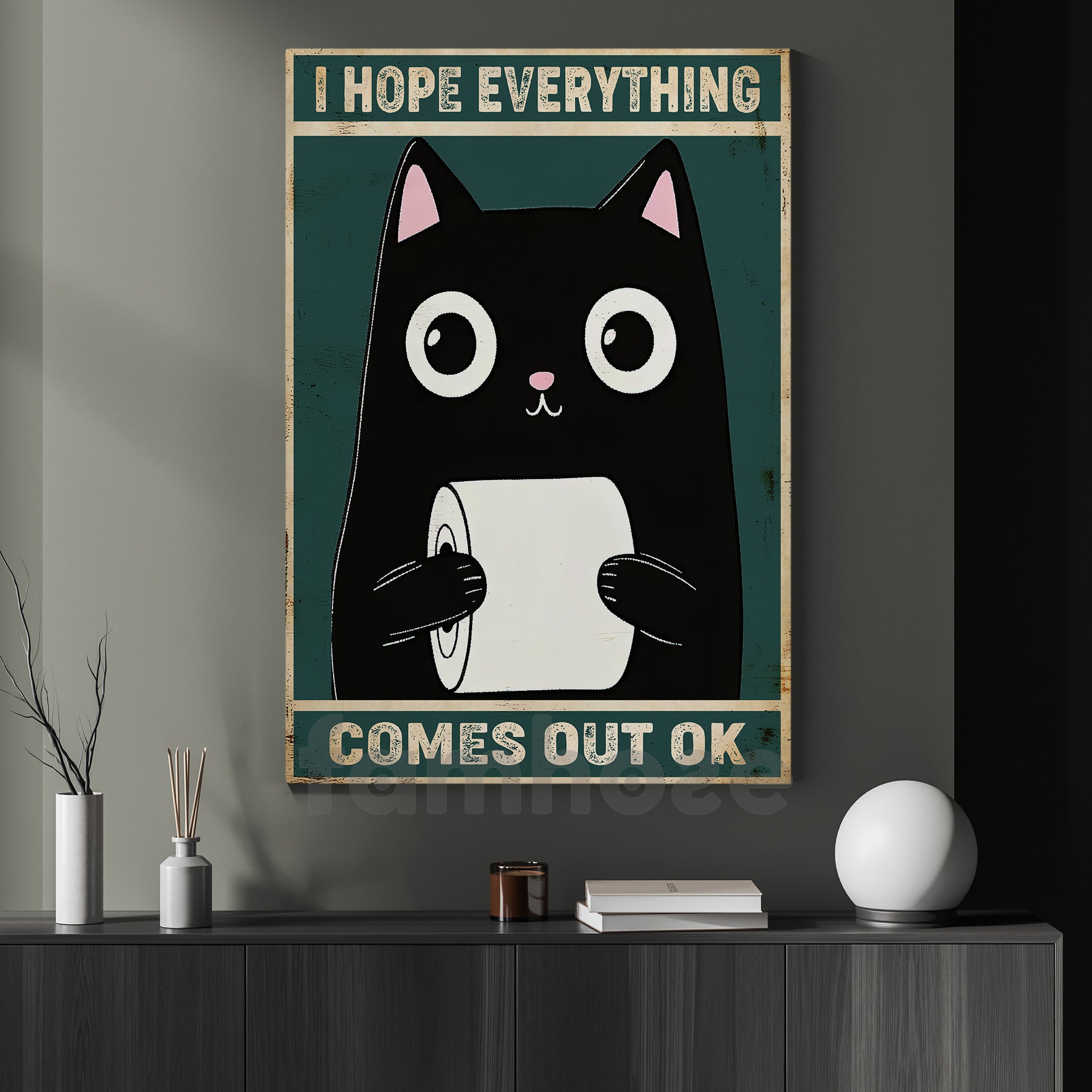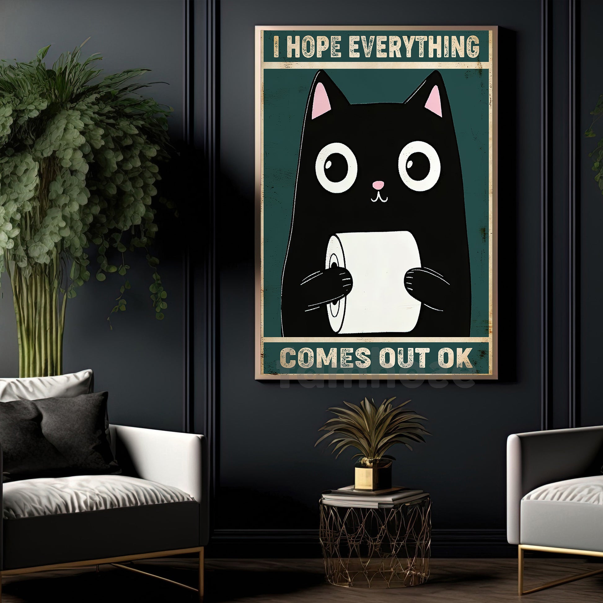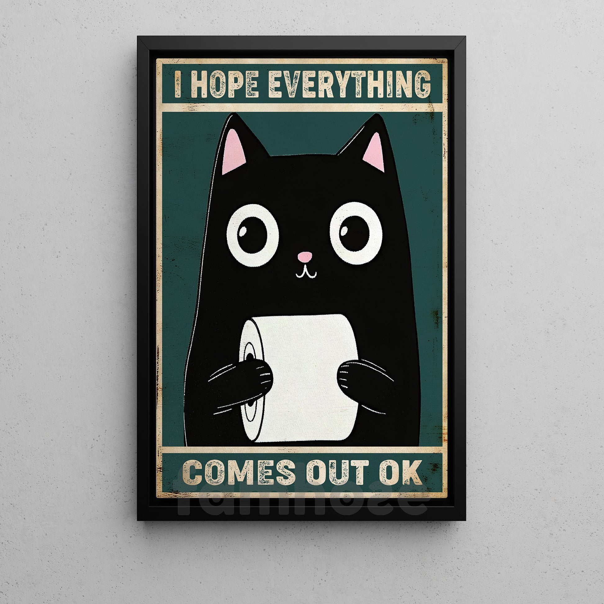 Funny Cat Toilet Canvas Painting, I Hope Everything Comes Out Ok Bathroom Wall Art Decor, Restroom Poster Gift For Cat Lovers