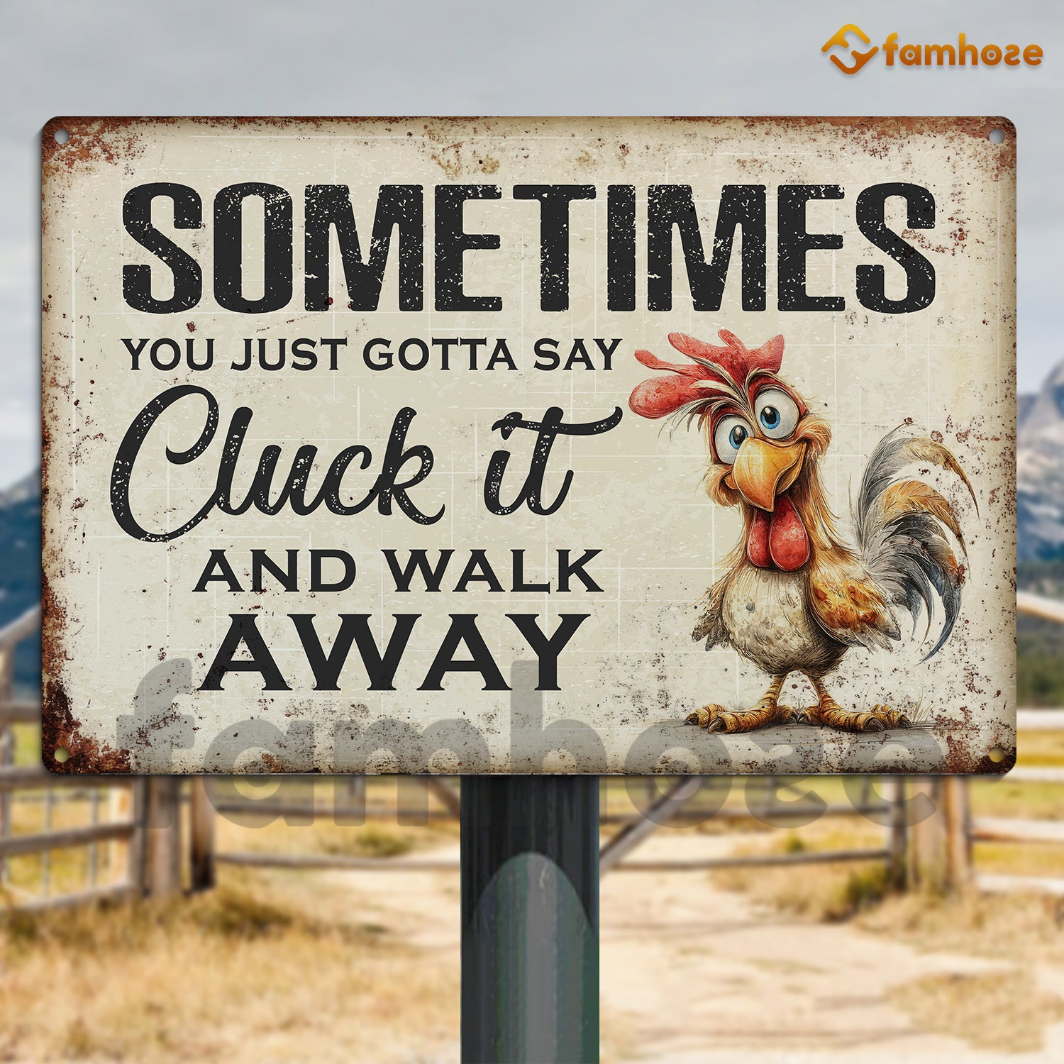 Funny Chicken Metal Sign, Cluck It And Walk Away Farm Sign, Farm Decor Gift For Chicken Lovers