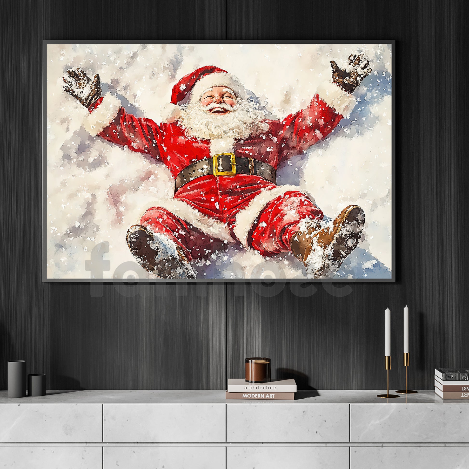 Funny Christmas Canvas Painting, Santa Playing In Snow Wall Art Decor, Xmas Poster Gift
