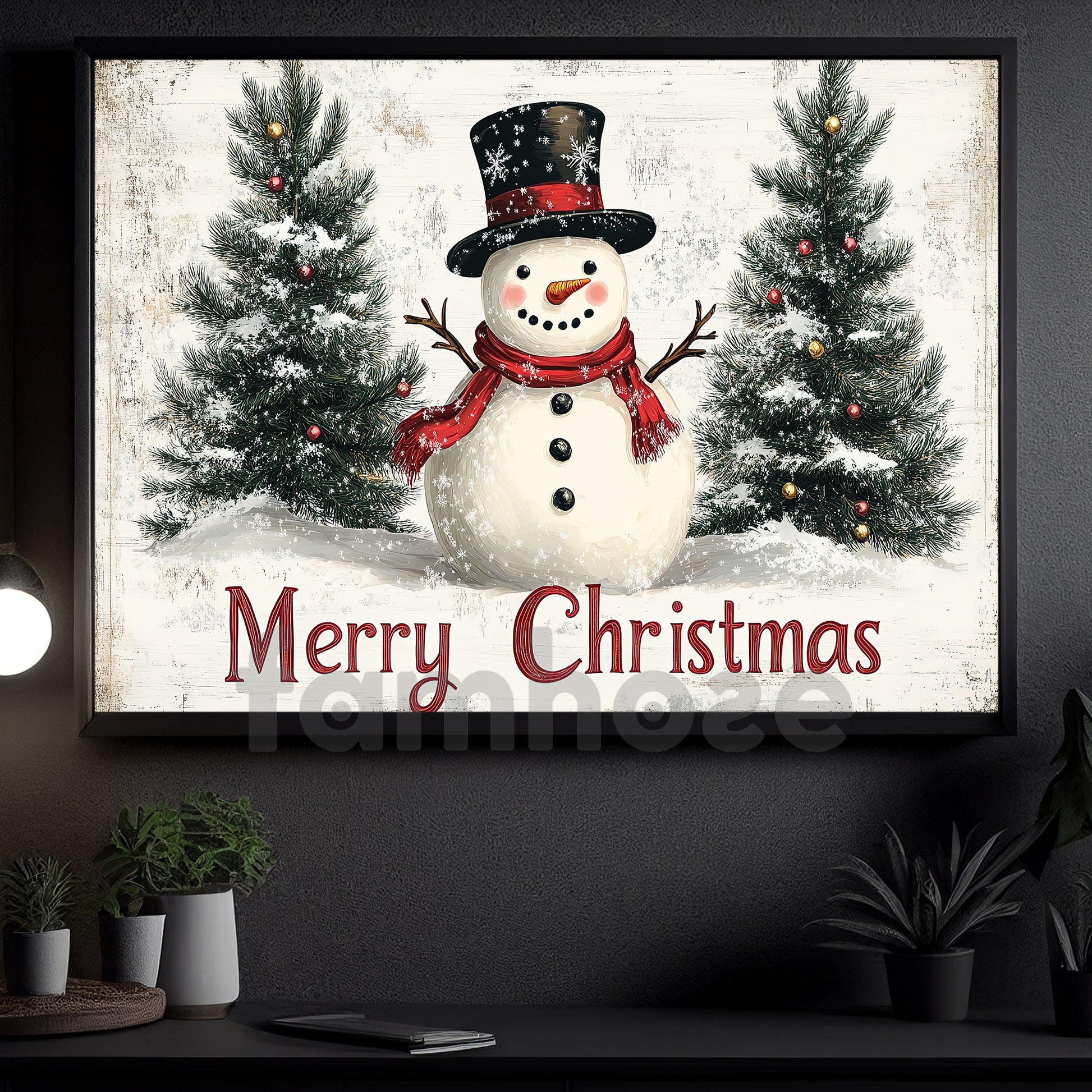 Funny Christmas Snowman Canvas Painting, Merry Christmas Wall Art Decor, Xmas Poster Gift For Snowman Lovers