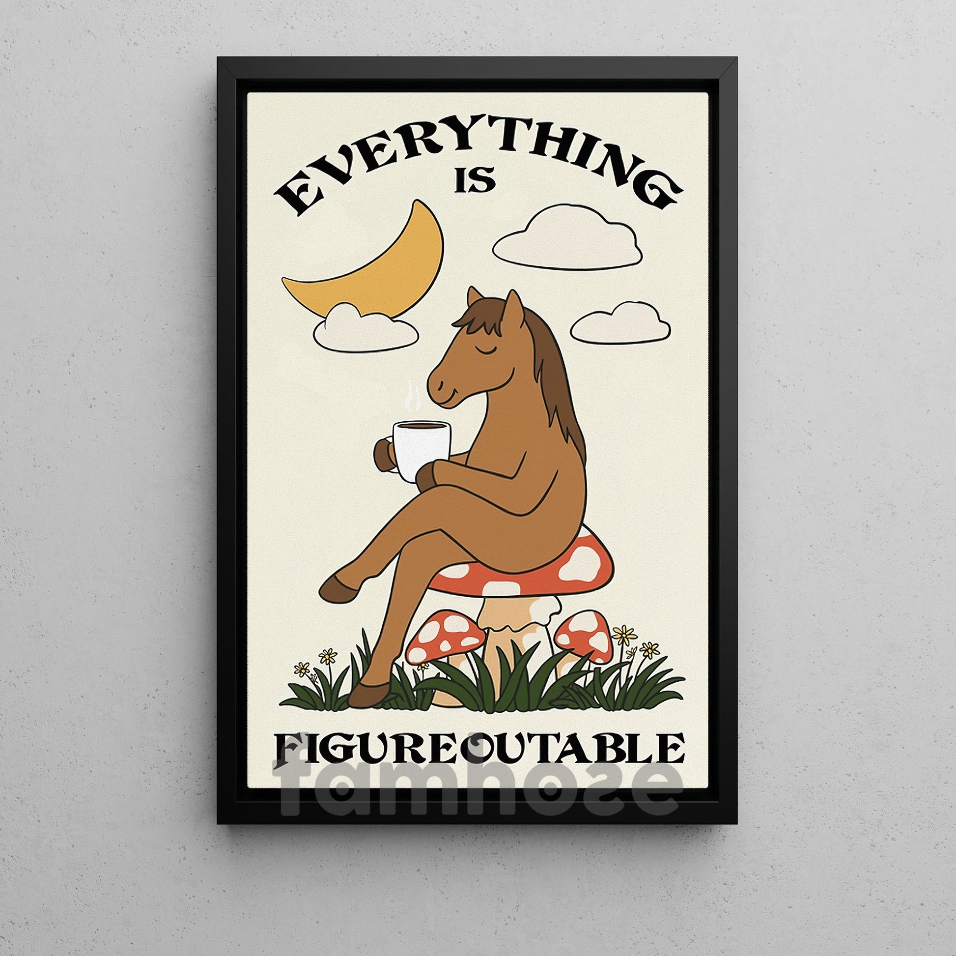 Funny Horse Canvas Painting, Everything Is Figureoutable Wall Art Decor, Poster Gift For Horse Lovers