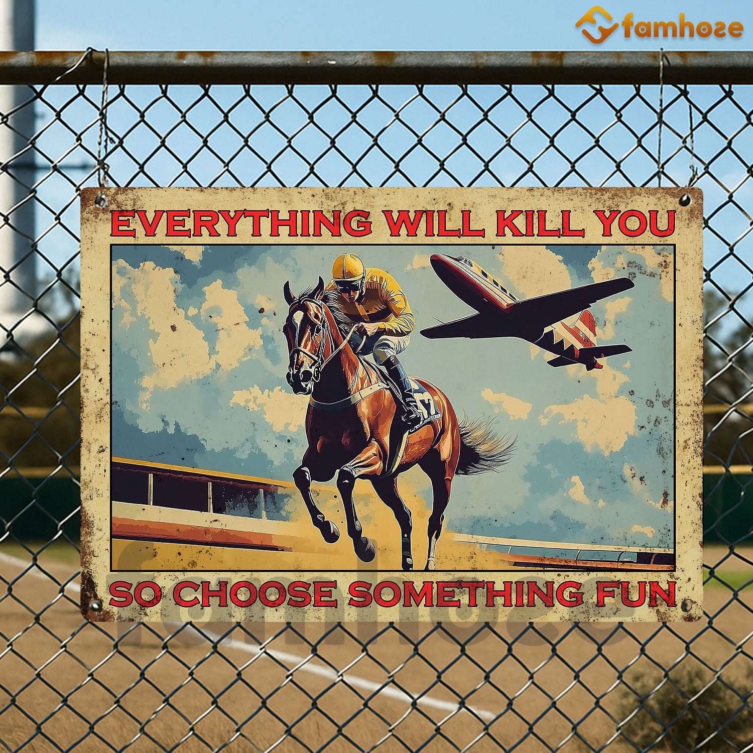Funny Horse Racing Metal Sign, Everything Will Kill You Sports Sign, Field Decor Gift For Horse Racing Lovers