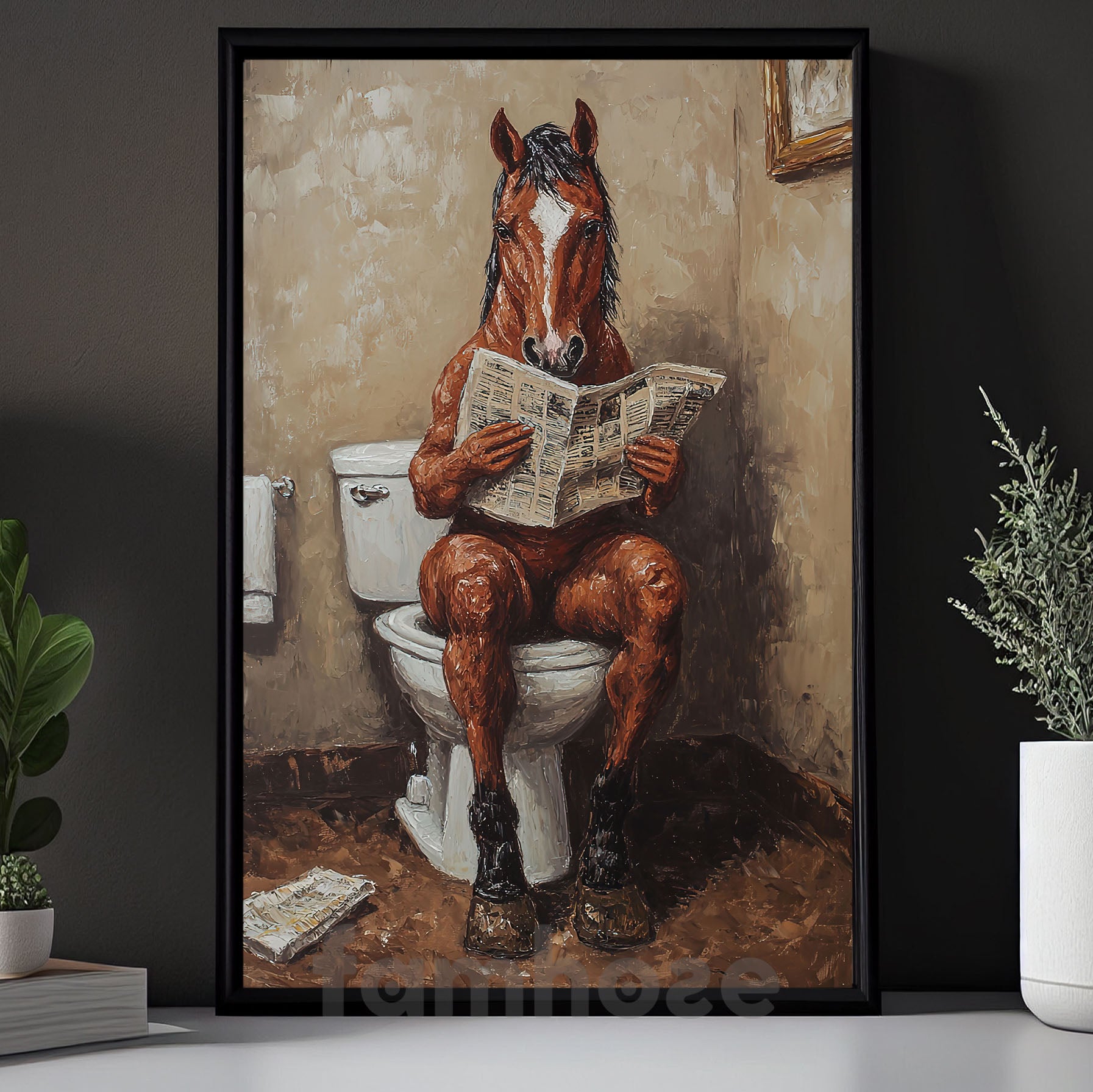 Funny Horse Toilet Canvas Painting, Horse Knows How To Use Toilet Bathroom Wall Art Decor, Restroom Poster Gift For Horse Lovers