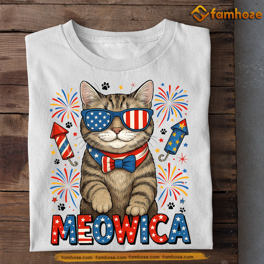 Funny July 4th Cat T-shirt, Meowica Tees Gift For Cat Lovers