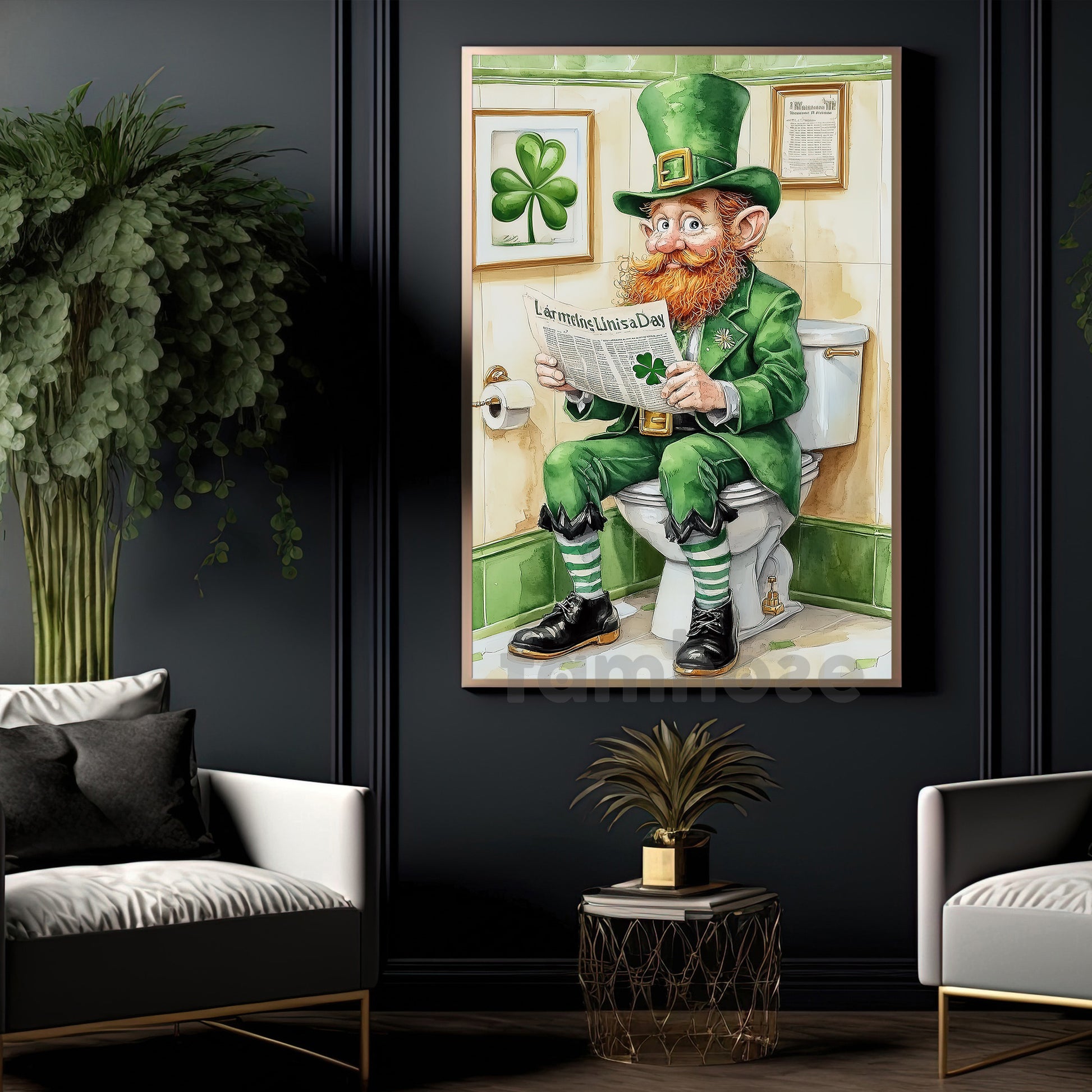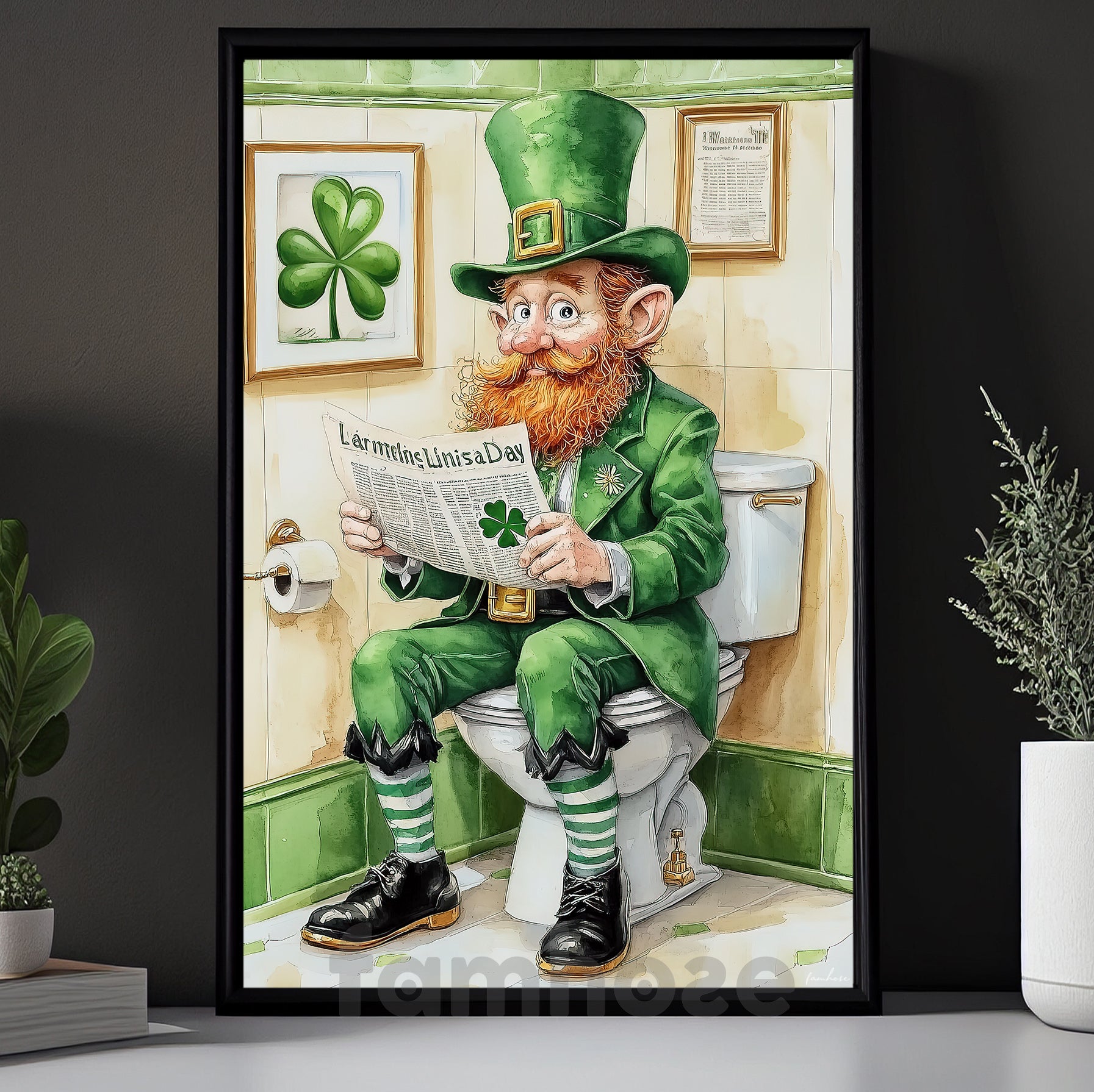 Funny Lucky Shamrock Leprechaun Toilet Canvas Painting, Irish Luck Takes A Break Bathroom Wall Art Decor, Restroom Poster St Patrick's Day Gift For Irish Lover