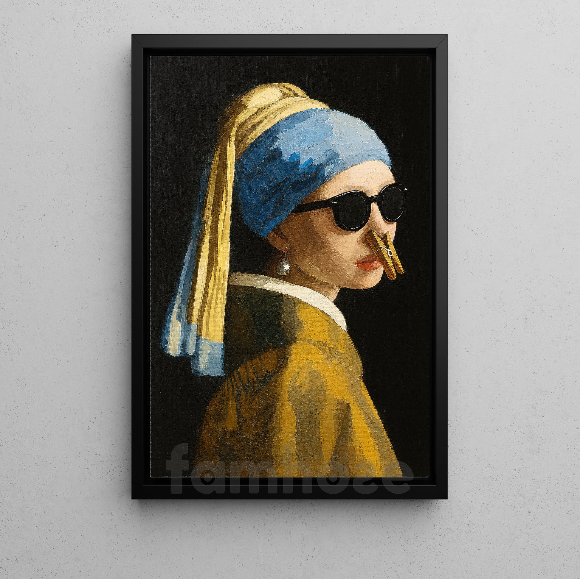 Funny Parody Oil Canvas Painting, Vermeer Parody Wall Art Decor, Poster Gift To Decor House Or Office