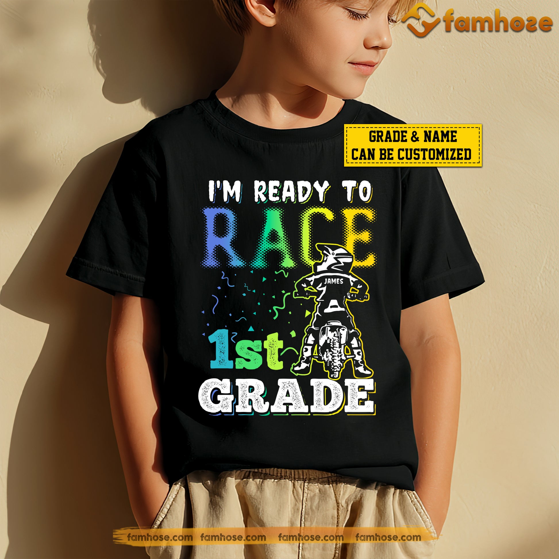 Funny Personalized Back To School Motocross Kid T-shirt, I'm Ready To Race Tees Gift For Dirt Bike Lovers