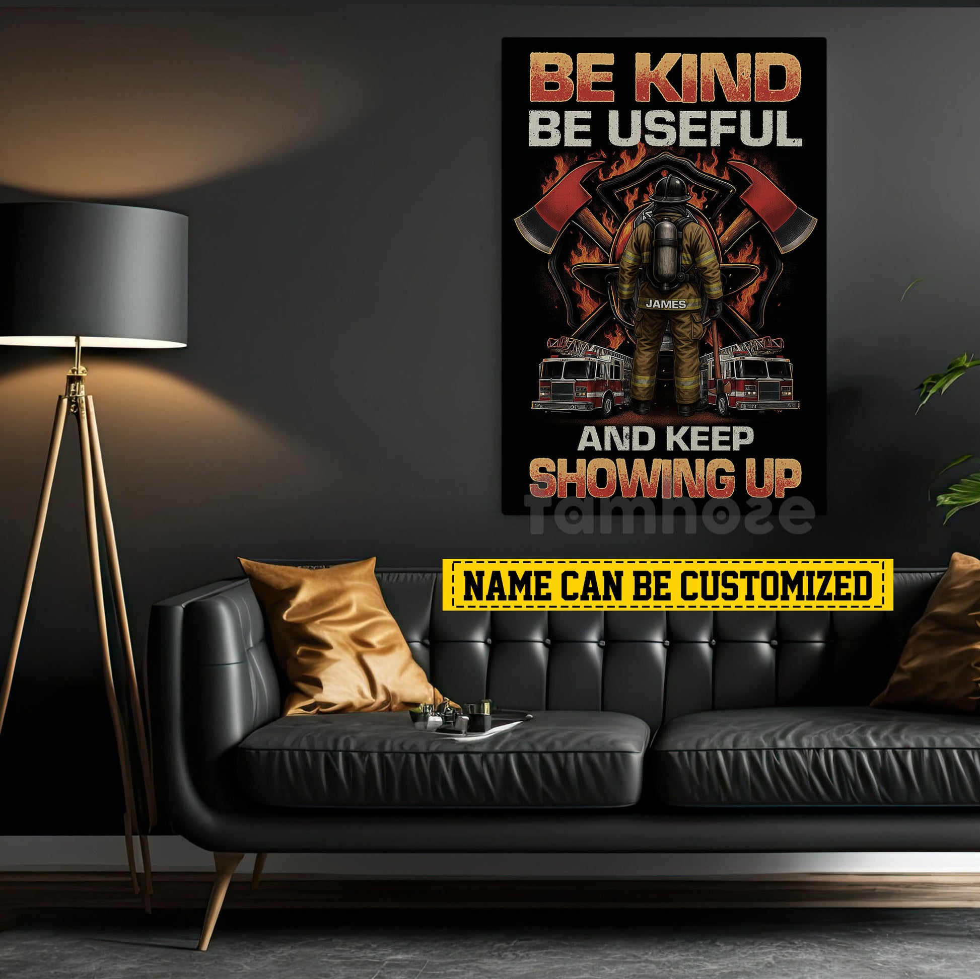 Funny Personalized Firefighter Canvas Painting, Be Kind Be Useful And Keep Showing Up Wall Art Decor, Poster Gift For Firefighter Lover