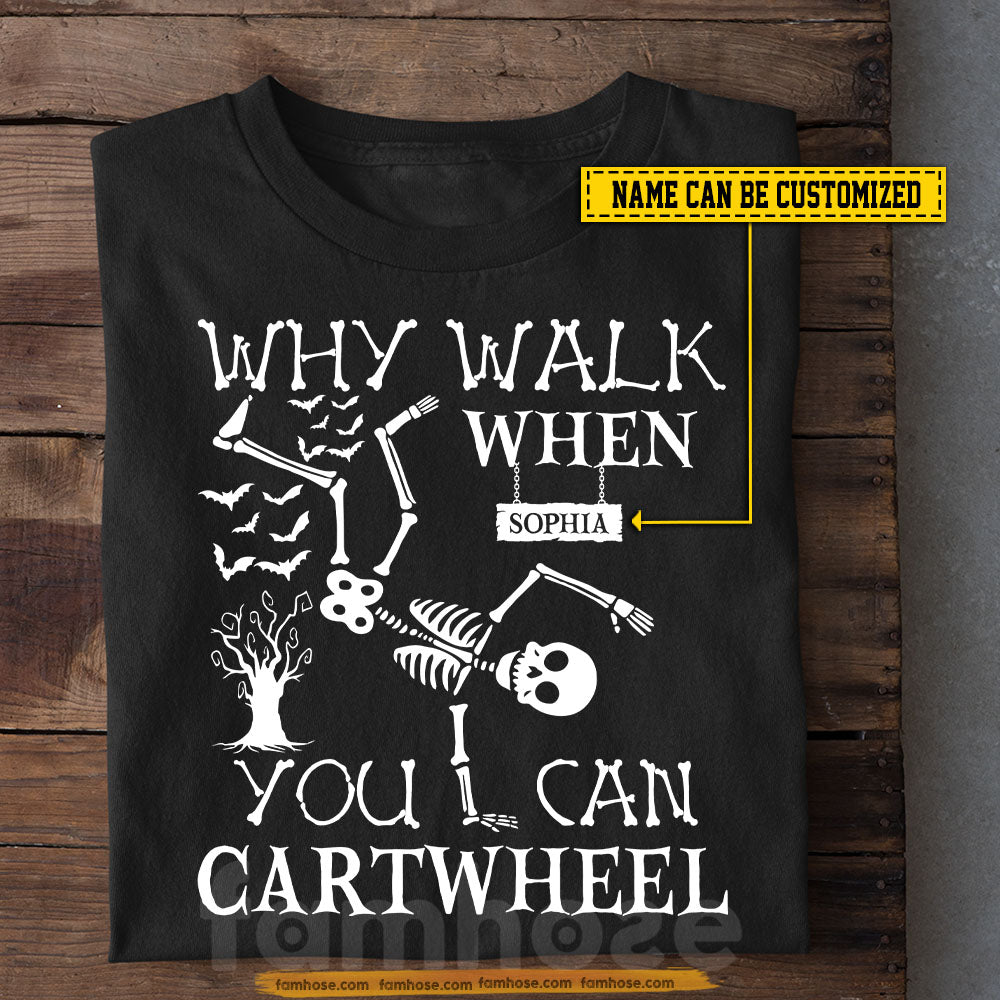 Funny Personalized Halloween Gymnastic T-shirt, Why Walk When You Can Cartwheel Tees Spooky Season Gift For Gymnastics Lovers