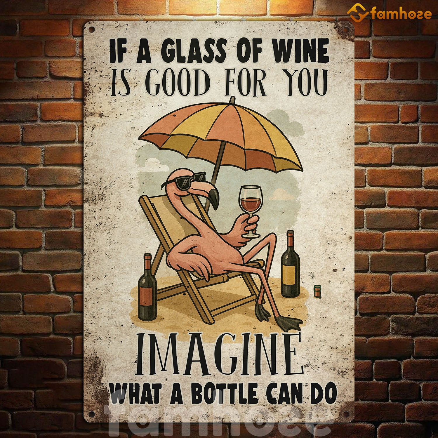 Funny Pool Flamingo Metal Sign, If A Glass Of Wine Pool Sign, Pool Decor Gift For Pool Lovers, Flamingo Lovers