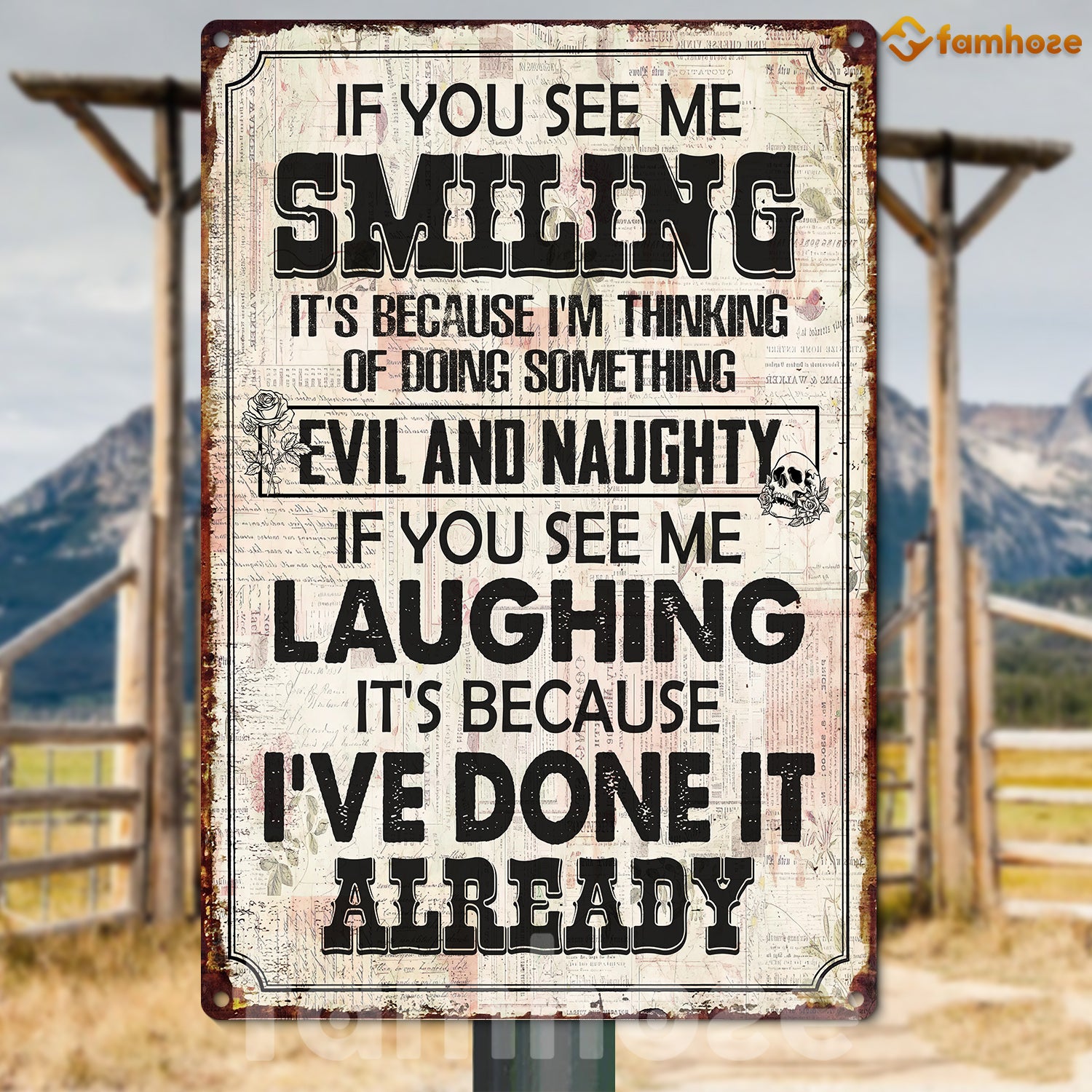 Funny Quote Metal Sign, If You See Me Smiling Garden Sign, Field Decor Gift