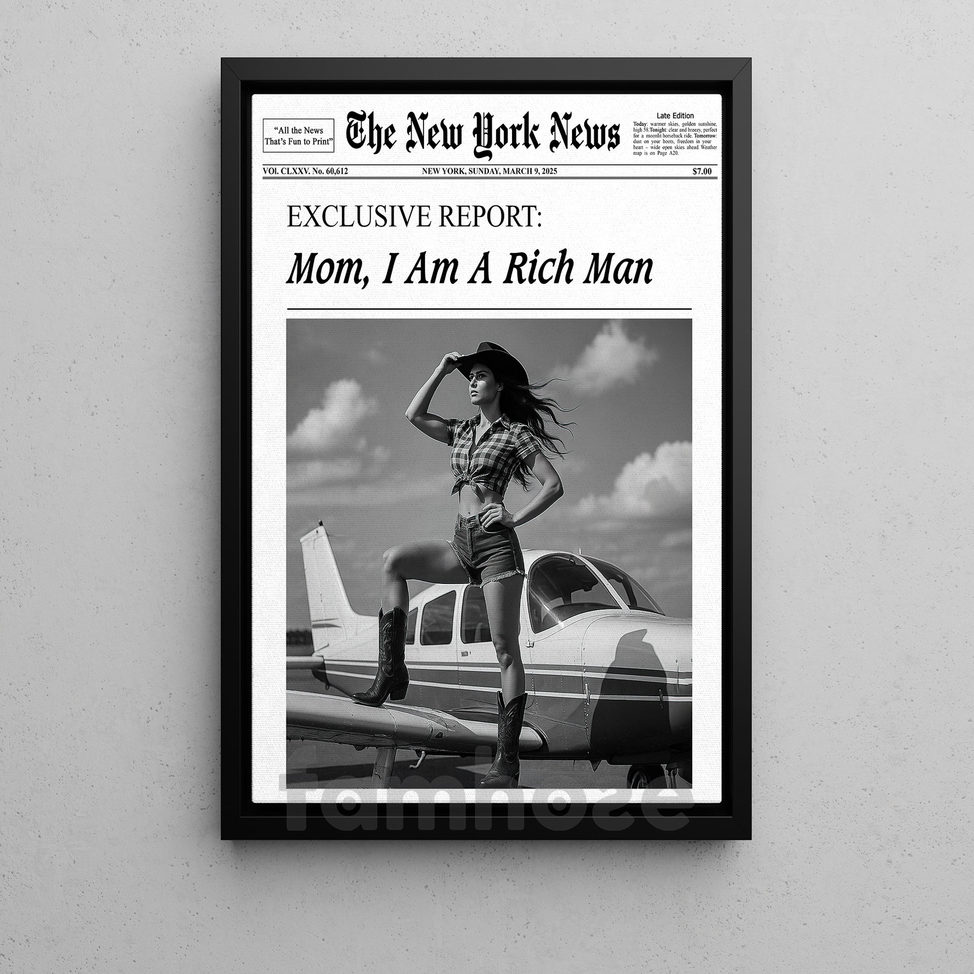 Funny The New York News Cowgirl Canvas Painting, Mom I Am A Rich Man Wall Art Decor, Poster Gift For Cowgirl