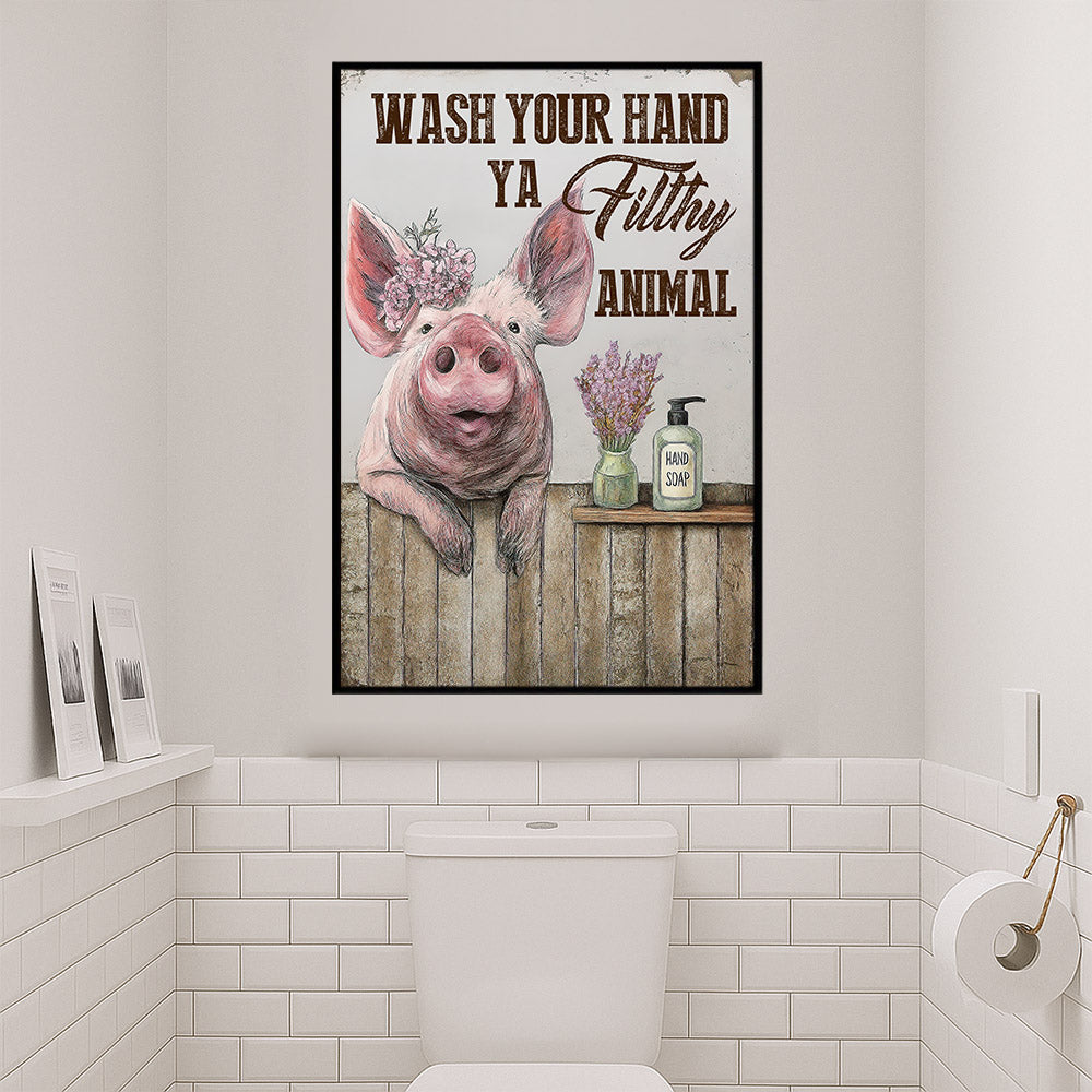 Funny Toilet Pig Canvas Painting, Wash Your Hand Ya Filthy Animal Bathroom Wall Art Decor, Xmas Restroom Poster Gift For Pig Lover