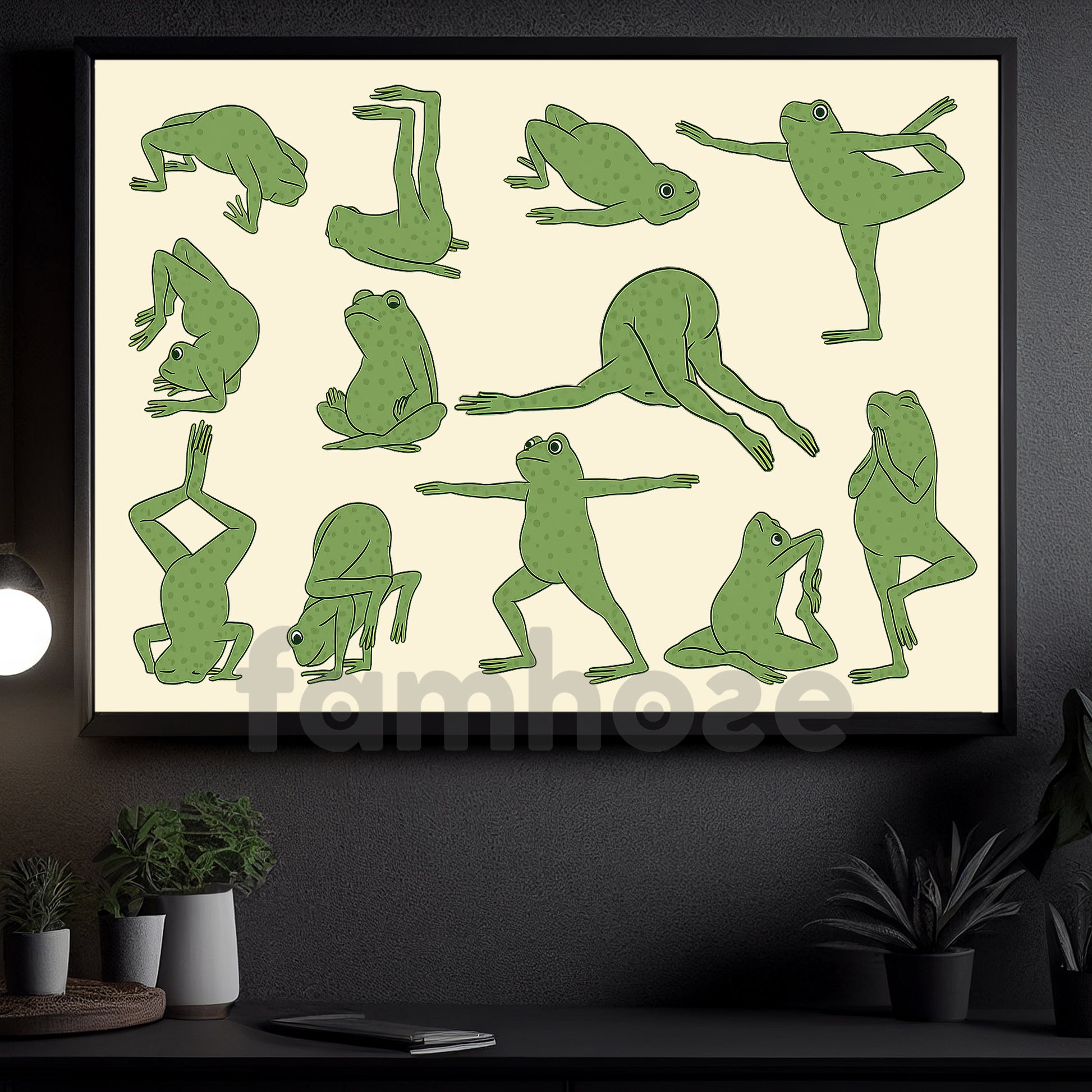 Funny Yoga Frog Canvas Painting, Cute Fitness Wall Art Decor, Poster Gift For Yoga Lovers