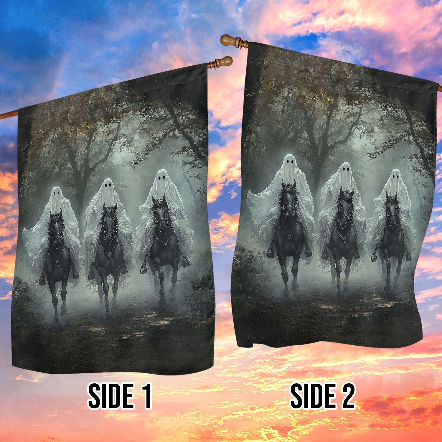Halloween Ghost Riding Horse Garden & House Flag, The Silent Riders Yard Flag, Spooky Season Gift For Horse Riding Lovers