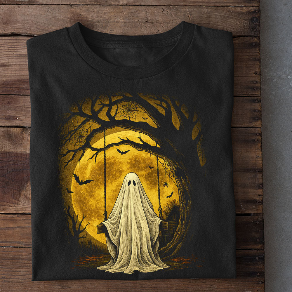 Halloween Ghost T-shirt, Moonlit Ghost Swing Tees Spooky Season Gift For Ghost Lovers