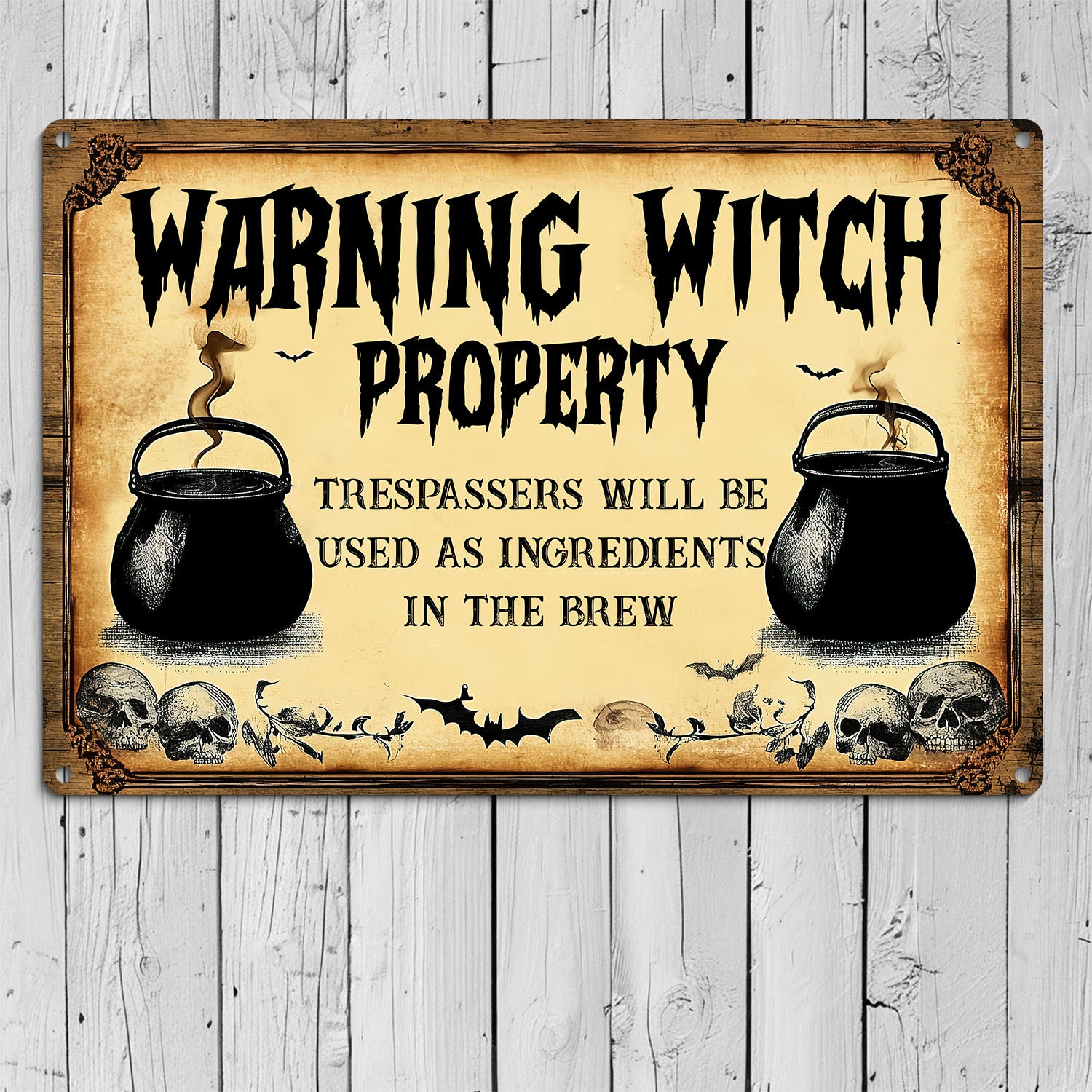 Halloween Metal Sign, Warning Witch Property, Welcome To The Magical Garden Backyard Sign