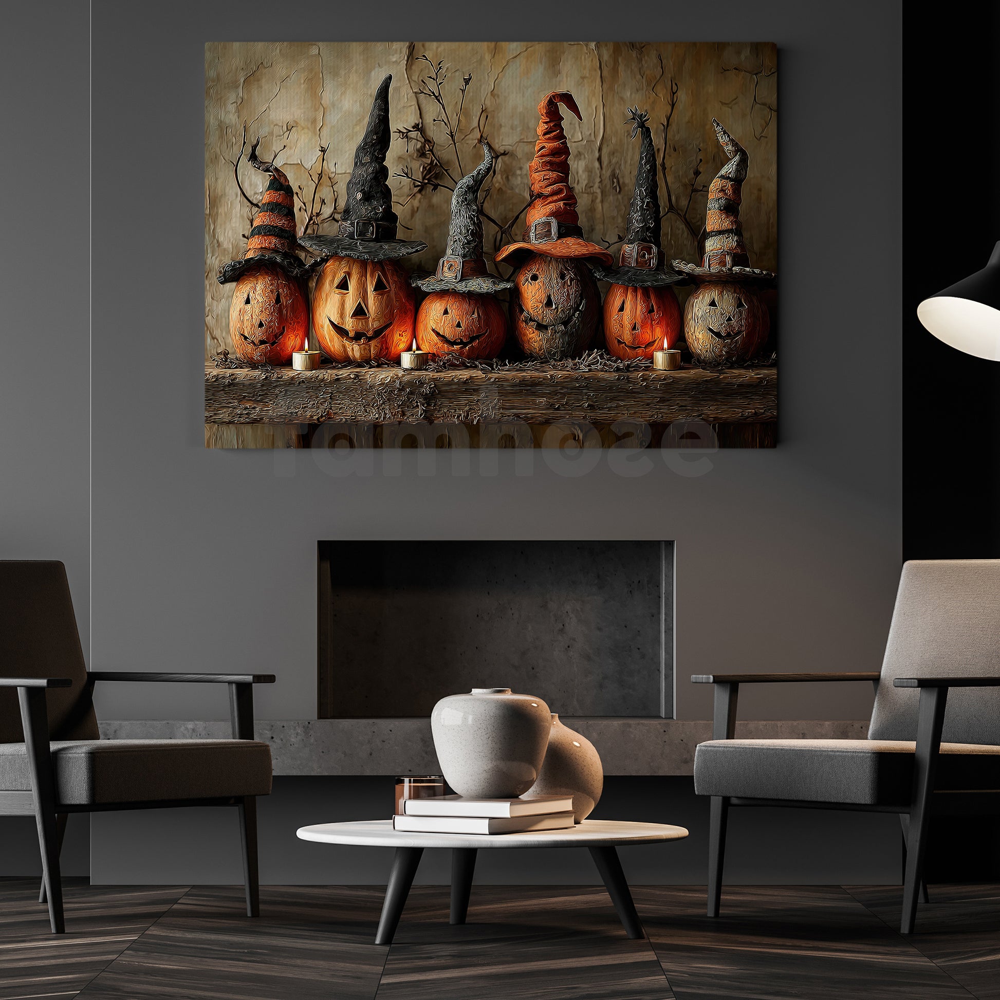Halloween Pumpkin Witches Canvas Painting, Witchy Pumpkin Wall Art Decor, Spooky Season Poster Gift For Witch Lovers