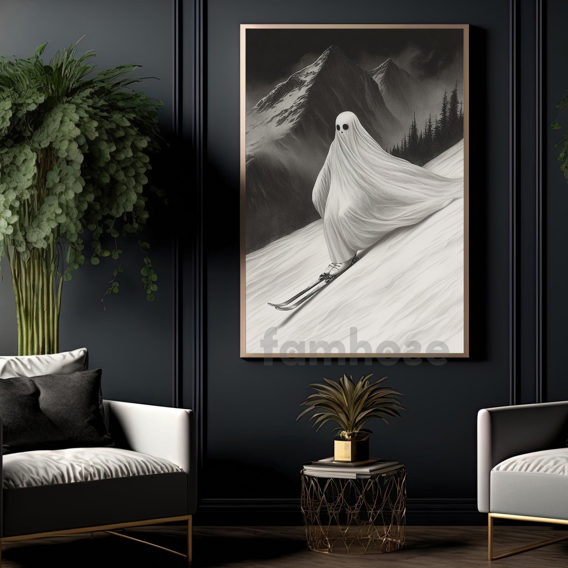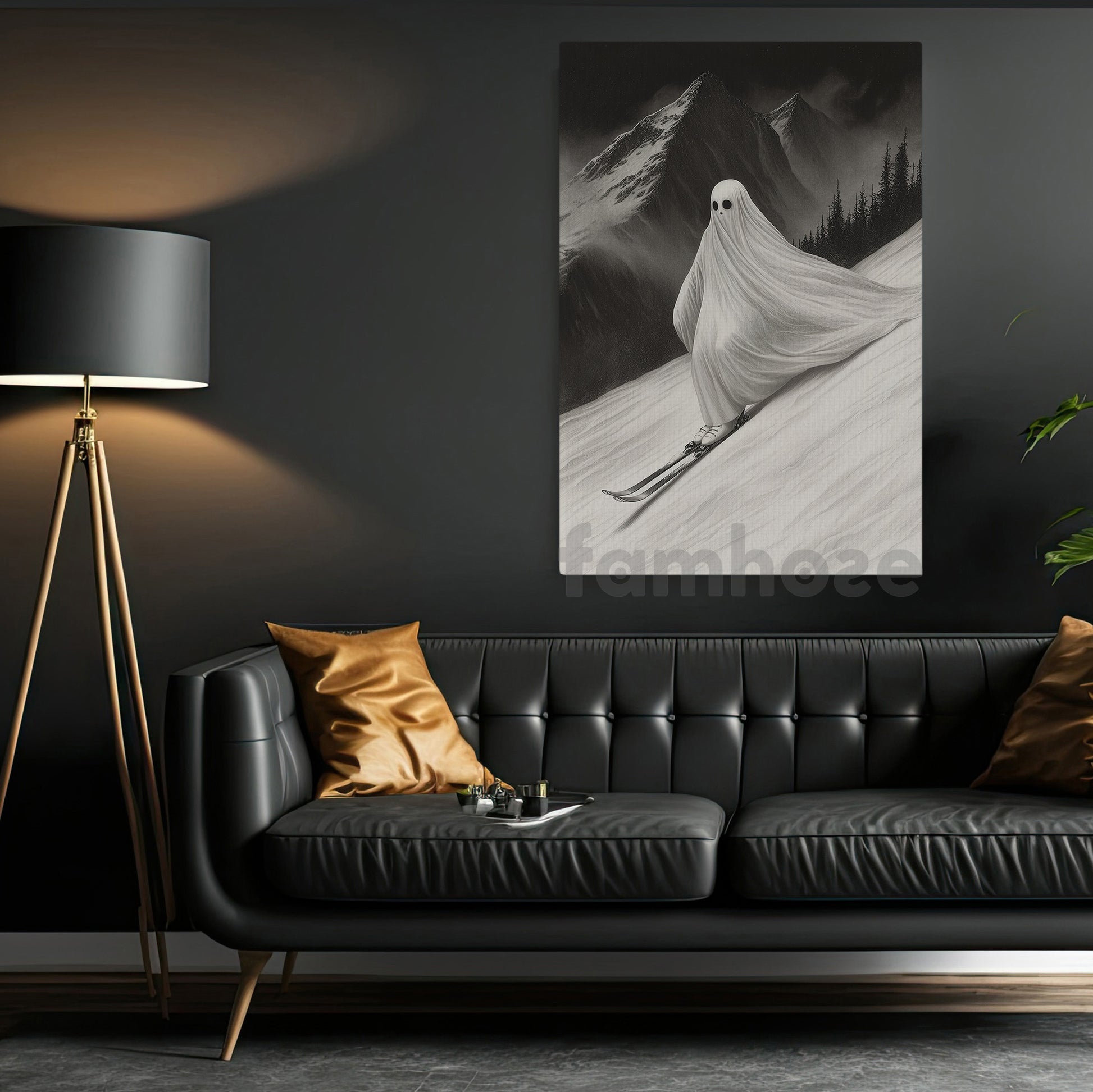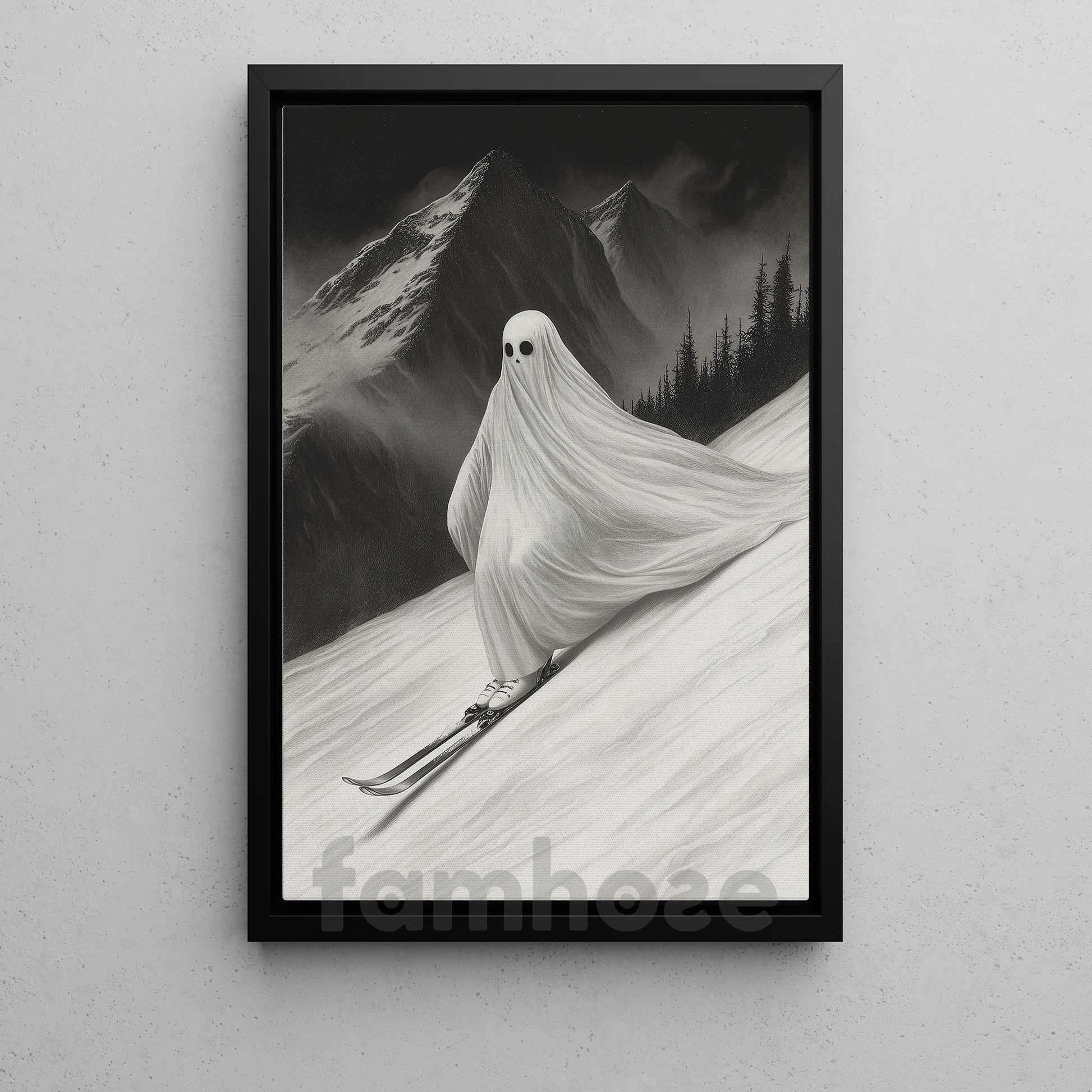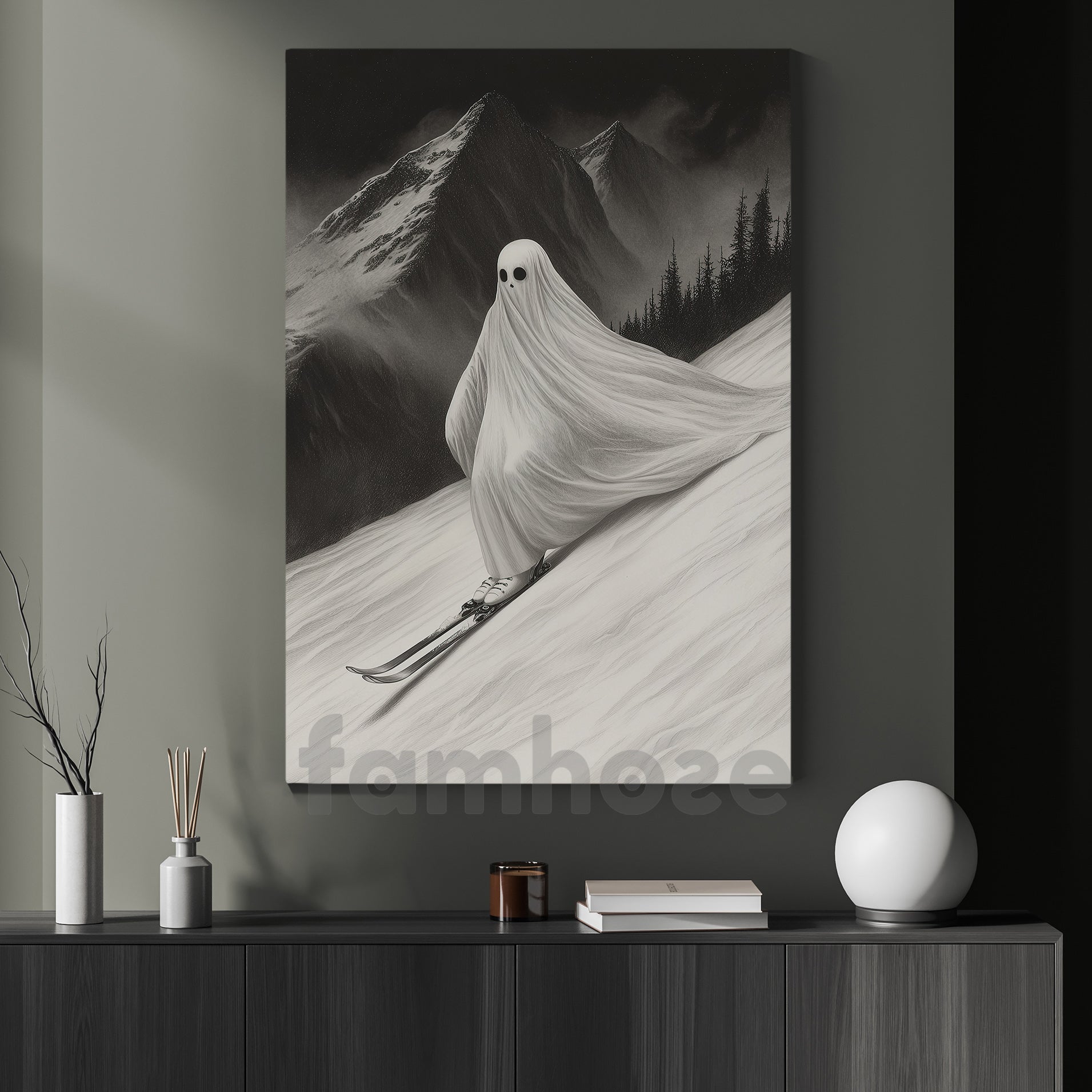 Halloween Skiing Ghost Canvas Painting, Phantom Descent Wall Art Decor, Spooky Season Poster Gift For Skiing Lovers