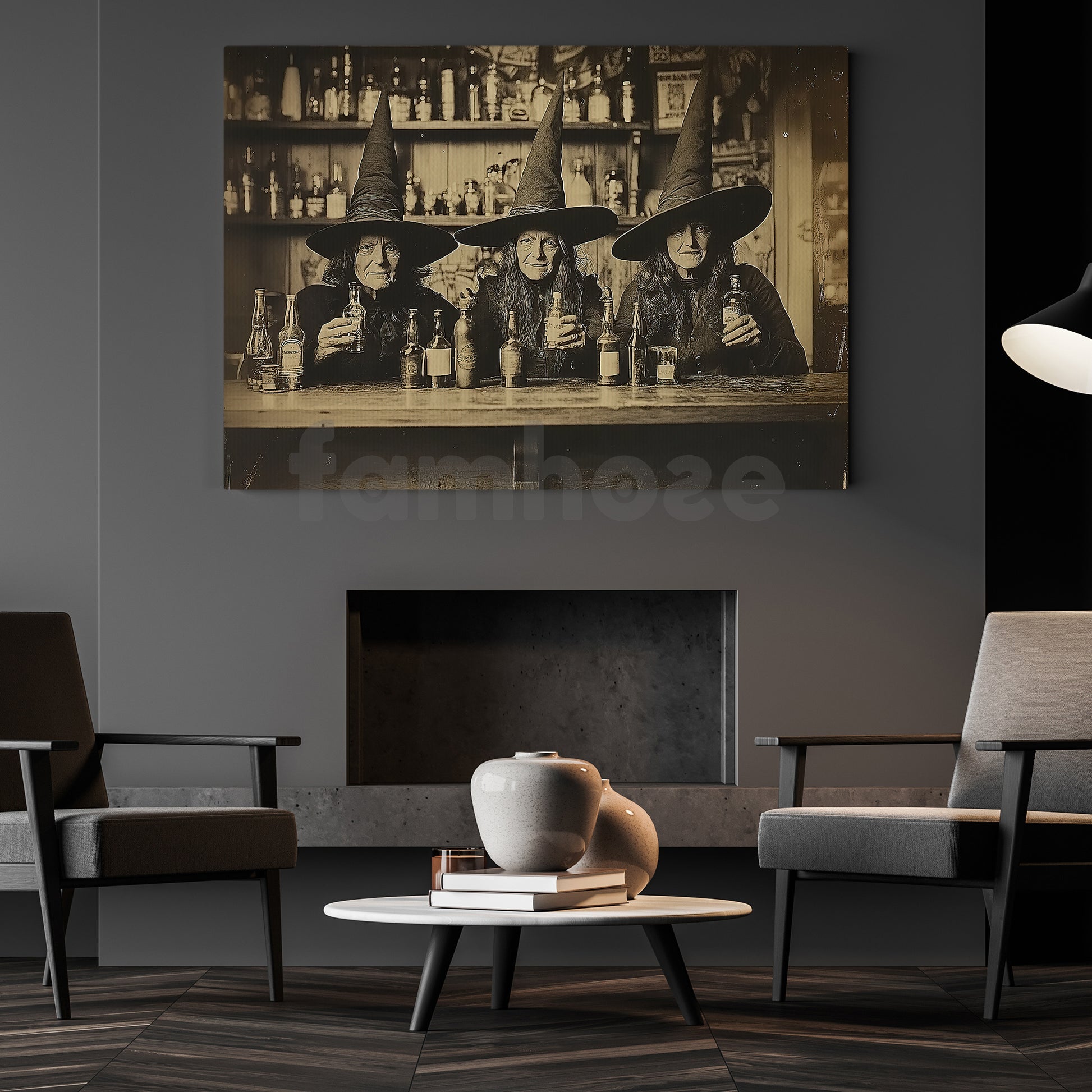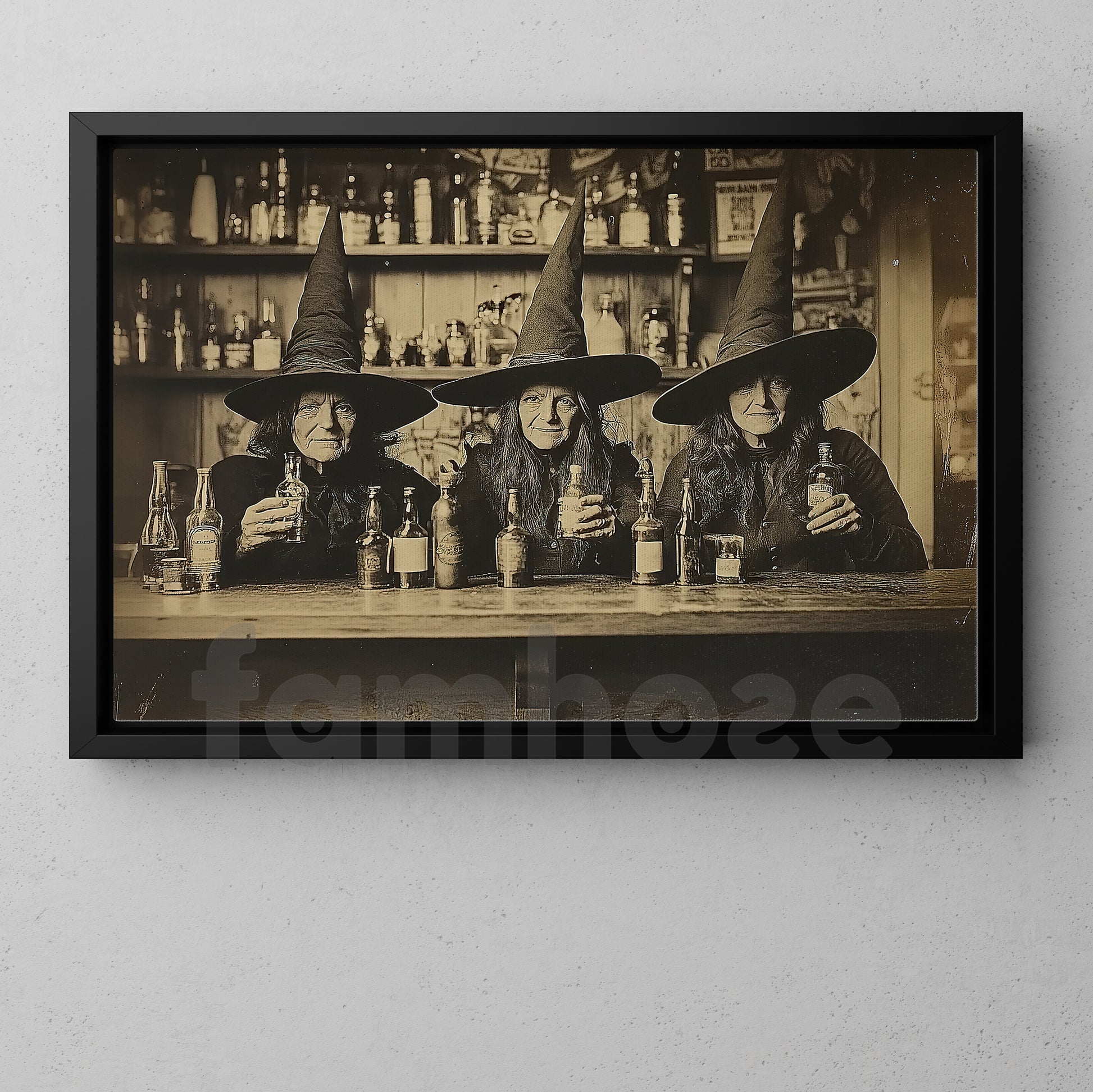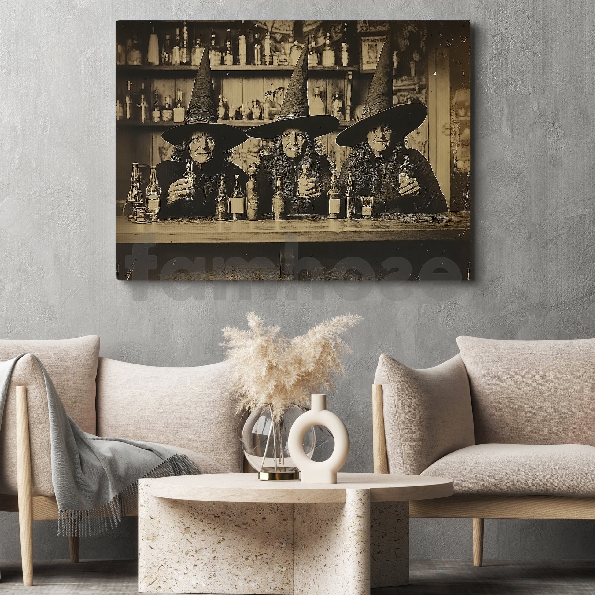 Halloween Witch Canvas Painting, Witchy Happy Hour Wall Art Decor, Spooky Season Poster Gift For Witch Lovers